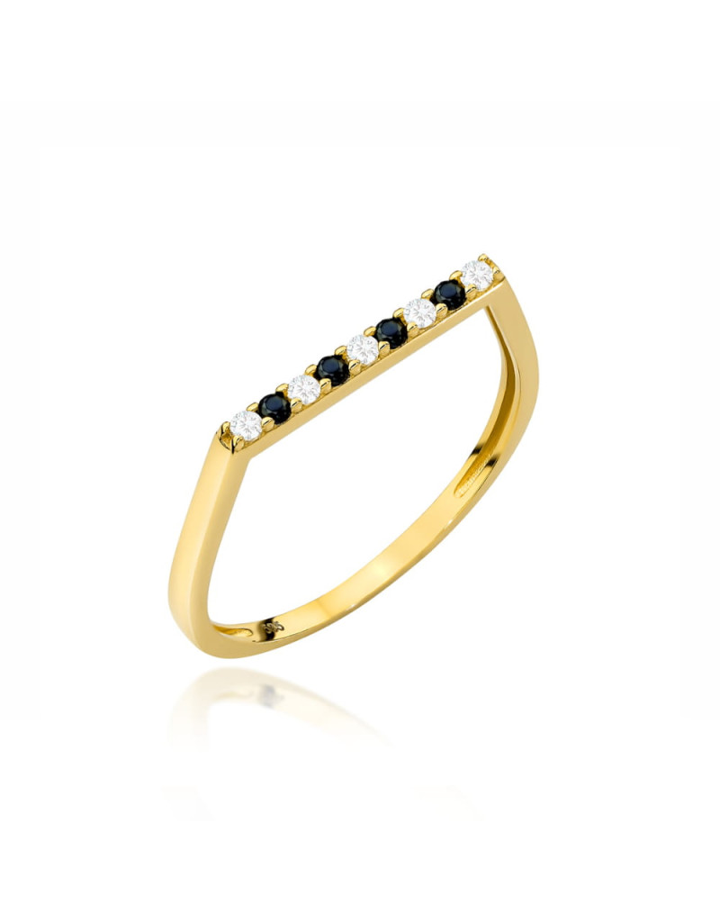 Pierścionek złoty z białymi cyrkoniami i czarnymi kamieniami w rzędzie (Rozmiar:18 pr. 585 Gramatura: 1.28)