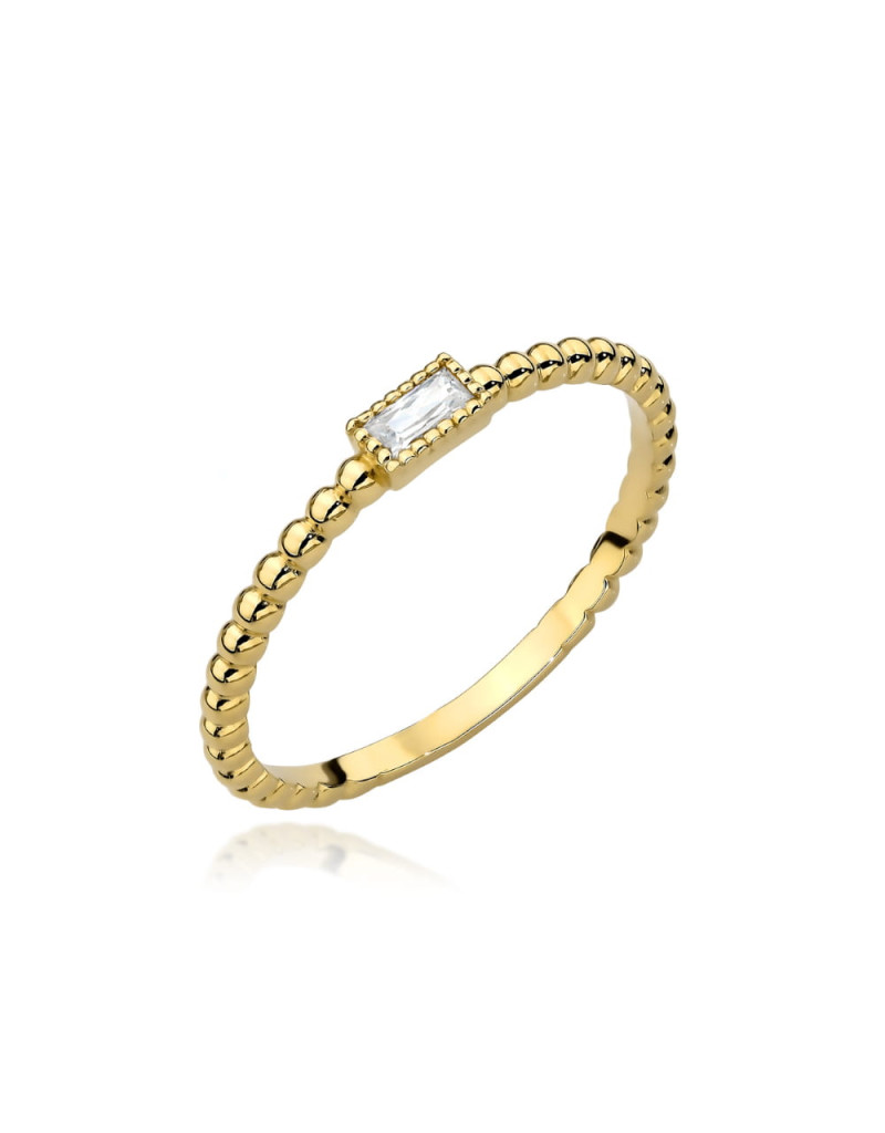 Wybierz pierścionek złoty kuleczki i prostokąt z białym kamieniem i ciesz się niepowtarzalnym stylem oraz jakością, która zachwyca!
