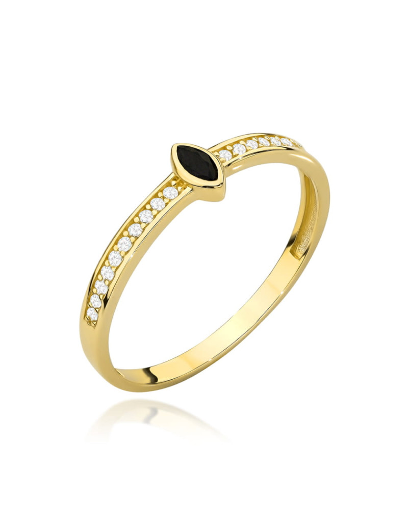 Wybierz pierścionek złoty z czarnym kamieniem i cyrkoniami i ciesz się niepowtarzalnym stylem oraz elegancją, która przyciąga wzrok!