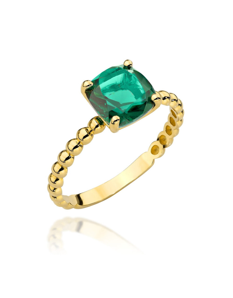 Pierścionek złoty z kolekcji "COLORFUL STONE" - przezroczysty zielony kwarc kwadrat (Rozmiar:10 pr. 585 Gramatura: 1.78)
