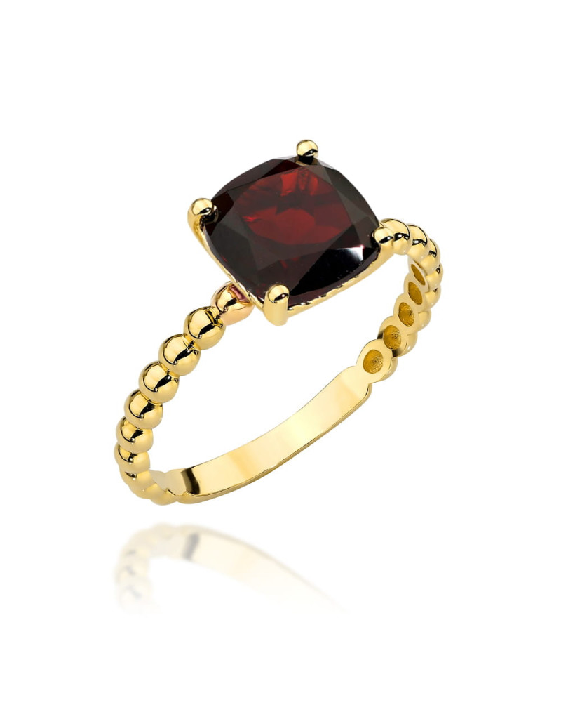 Pierścionek złoty z kulkową szyną z kolekcji "COLORFUL STONE" - granat (Rozmiar:11 pr. 585 Gramatura: 2.00)