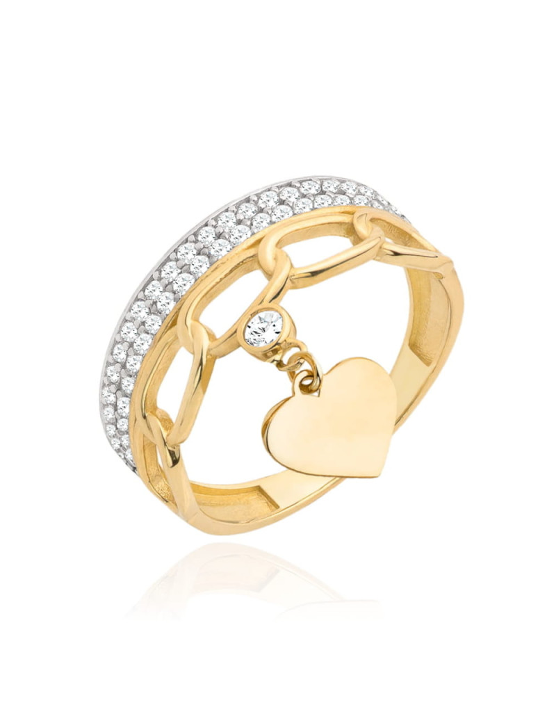 Pierścionek złoty z wiszącym sercem i cyrkoniami (Rozmiar:12 pr. 585 Gramatura: 3.32)