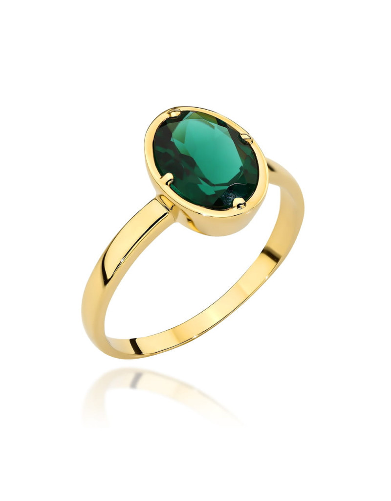 Pierścionek złoty z kolekcji "COLORFUL STONE" - zielony kwarc owal (Rozmiar: 13 pr. 585 Gramatura: 2.42)