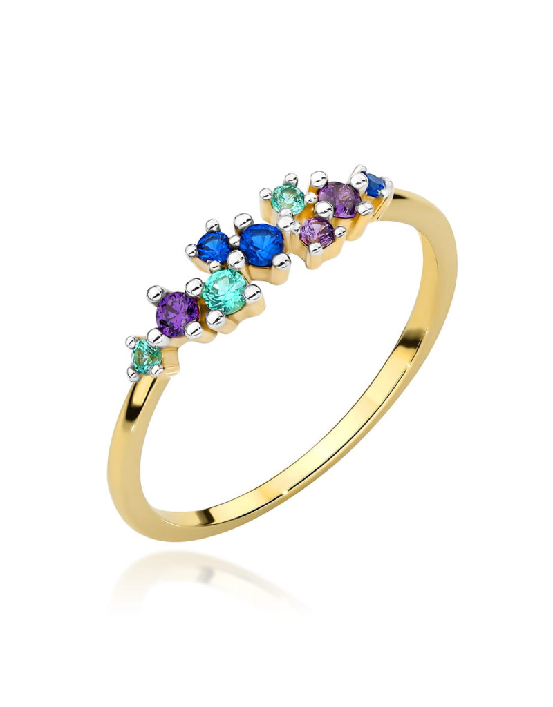 Pierścionek złoty z kamieniami w odcieniach szafiru to wyjątkowy dodatek, który zachwyci każdą miłośniczkę biżuterii. Wykonany z wysokiej jakości złota próby 585, ten elegancki pierścionek łączy w sobie klasykę z nowoczesnym stylem.