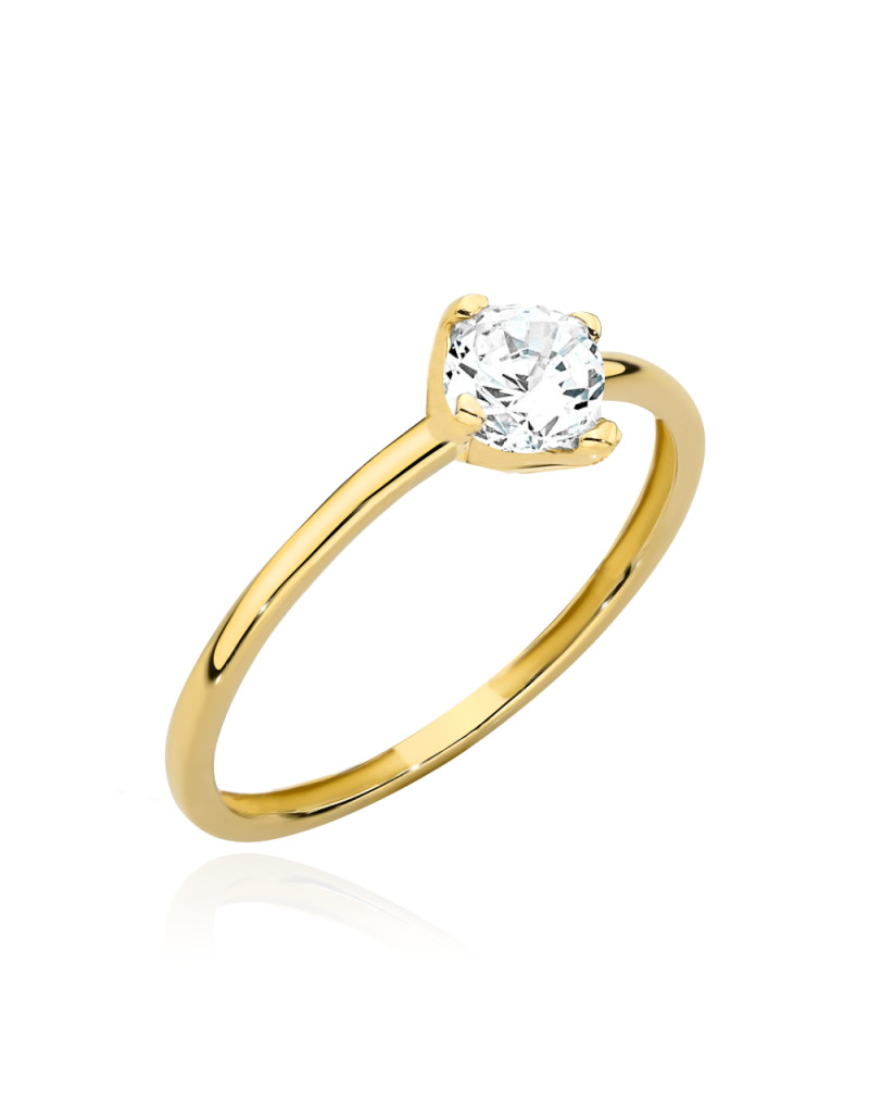 Pierścionek złoty z centralną cyrkonią w czterech łapkach (Rozmiar pr. 585: 18 Gramatura: 1.79)