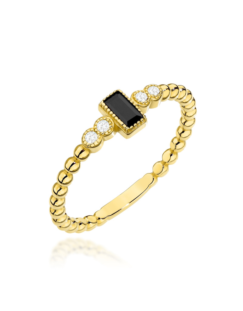 Nie czekaj! Wybierz pierścionek złoty z kuleczek z czarnym kamieniem i cyrkoniami i podkreśl swoją wyjątkowość!
