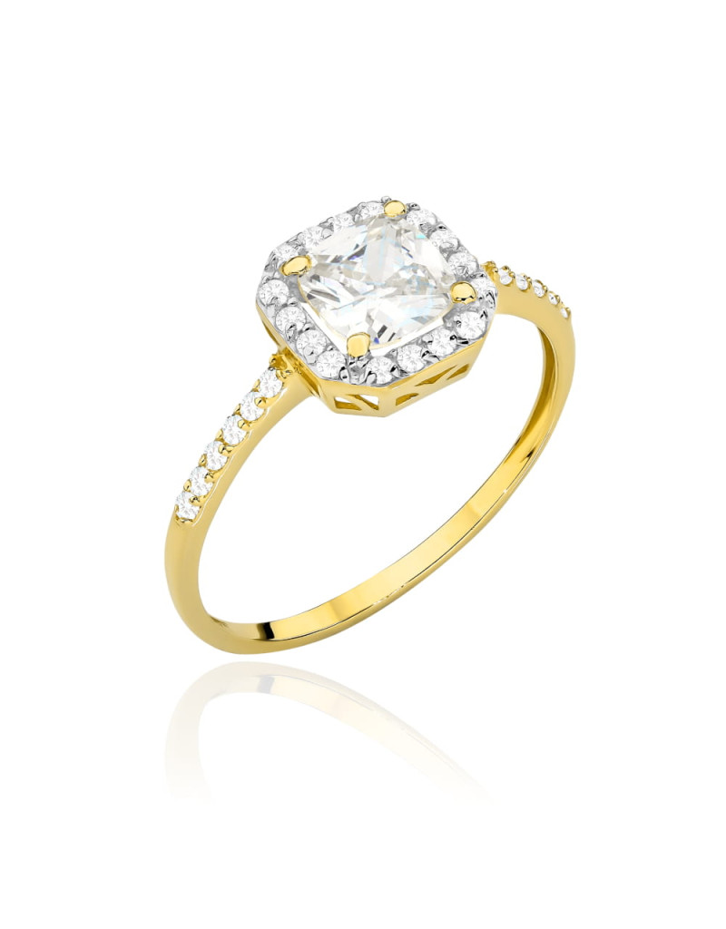 Pierścionek złoty z kwadratowym kamieniem to elegancka biżuteria, która zachwyca swoim wyjątkowym designem. Wykonany z złota próby 585, łączy w sobie klasykę i nowoczesność, idealnie wpisując się w najnowsze trendy.