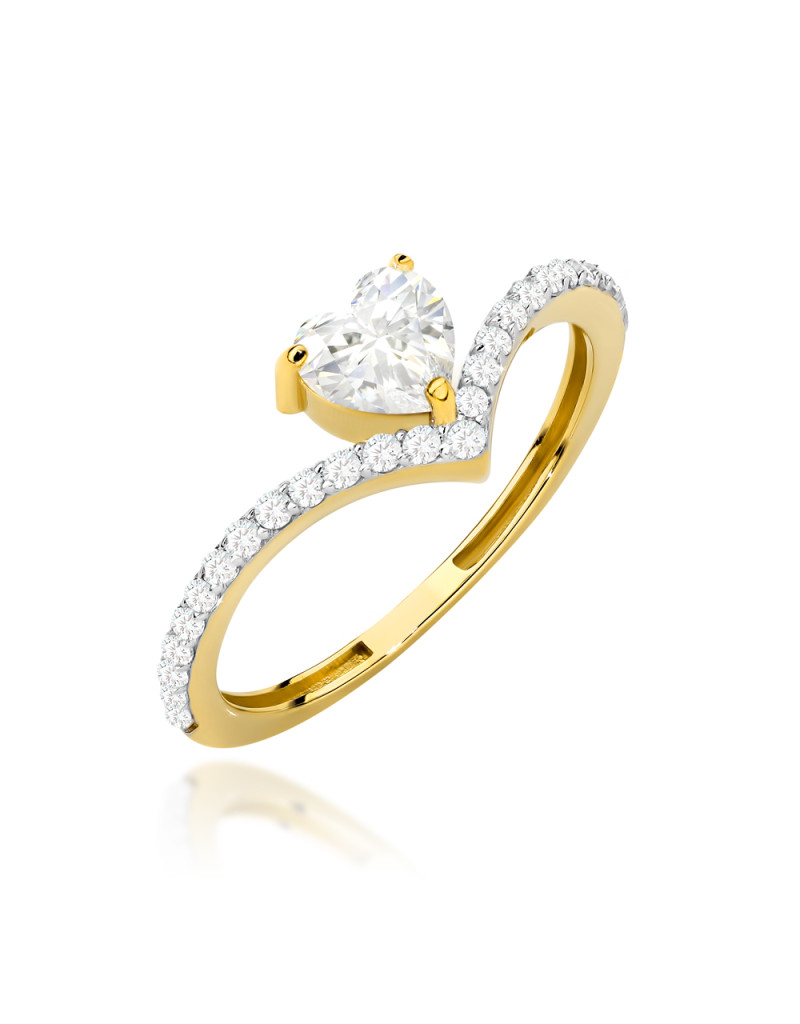 Pierścionek złoty z sercem zdobiony cyrkoniami (Rozmiar pr. 585: 16 Gramatura: 1.54)