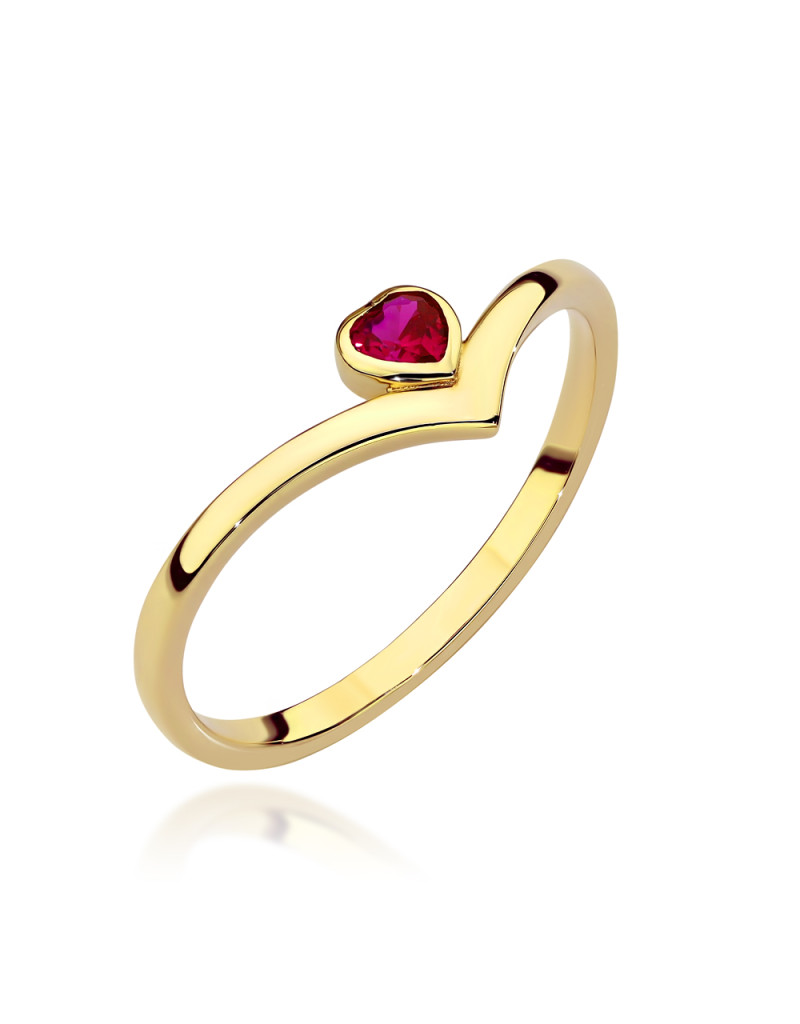 Pierścionek złoty z gładką szyną i sercem w kolorze rubinowym (Rozmiar: 15 pr. 585 Gramatura: 1.44)