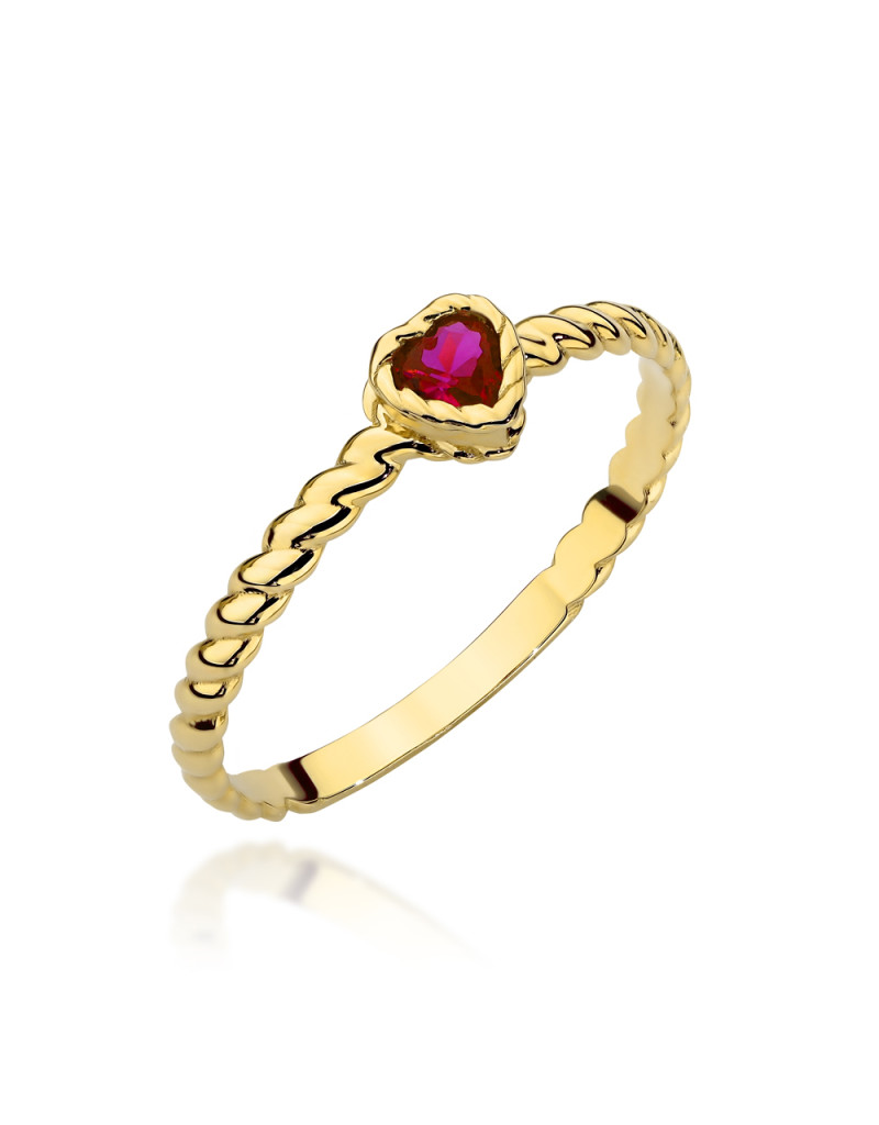 Pierścionek złoty pleciony z serduszkiem w kolorze rubinowym (Rozmiar: 18 pr. 585 Gramatura: 1.16)