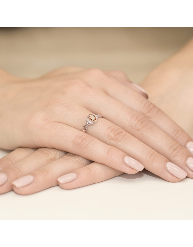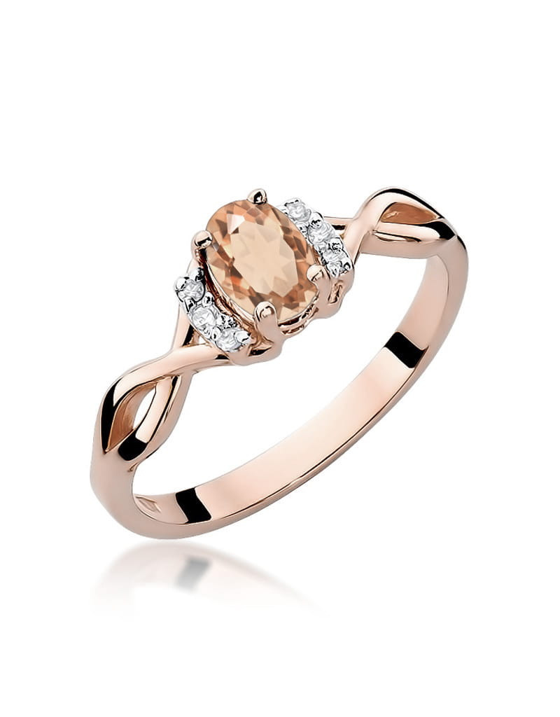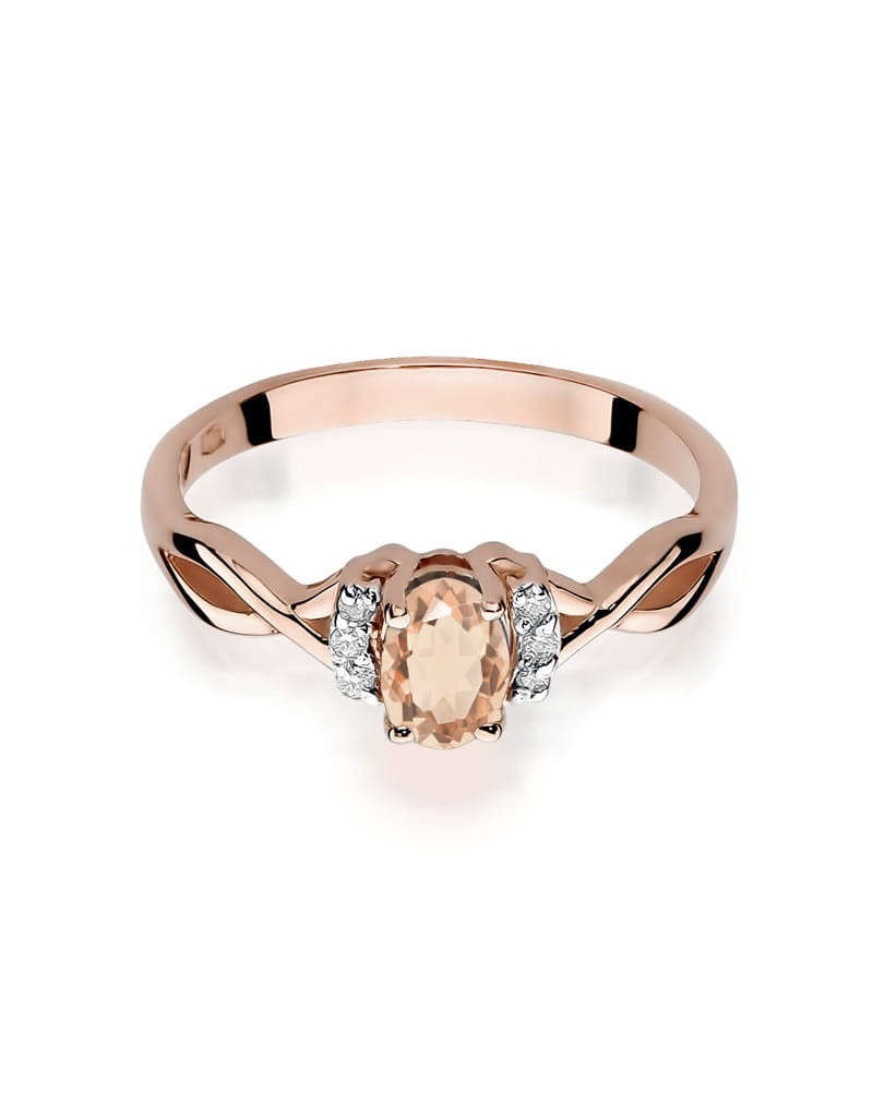 Urzekający wzór pierścionka z różowego złota z czarującym morganitem i 6 brylantami.