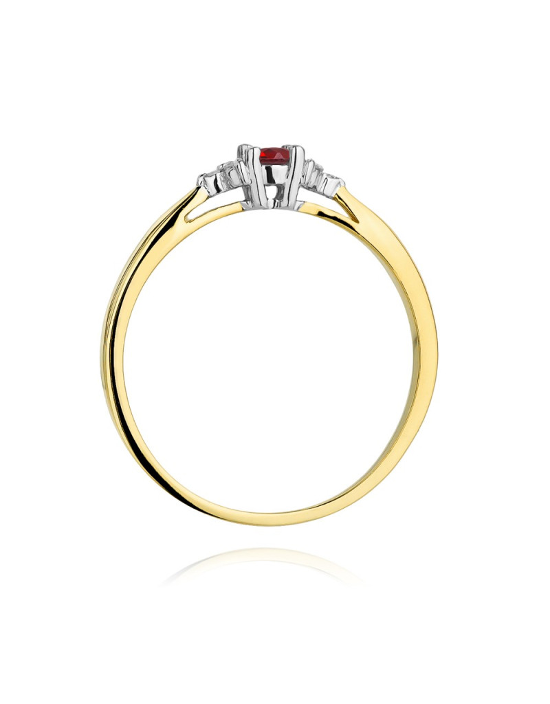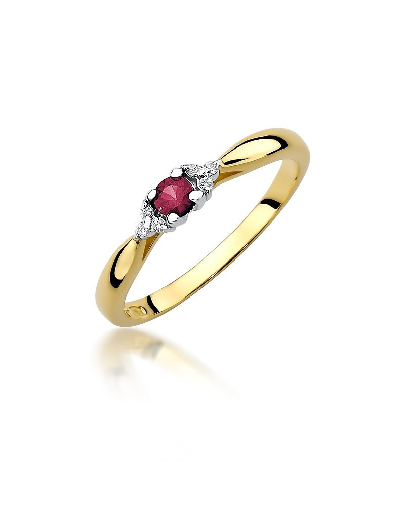 Efektowny złoty pierścionek z czarującym rubinem i brylantami w wyjątkowej oprawie.