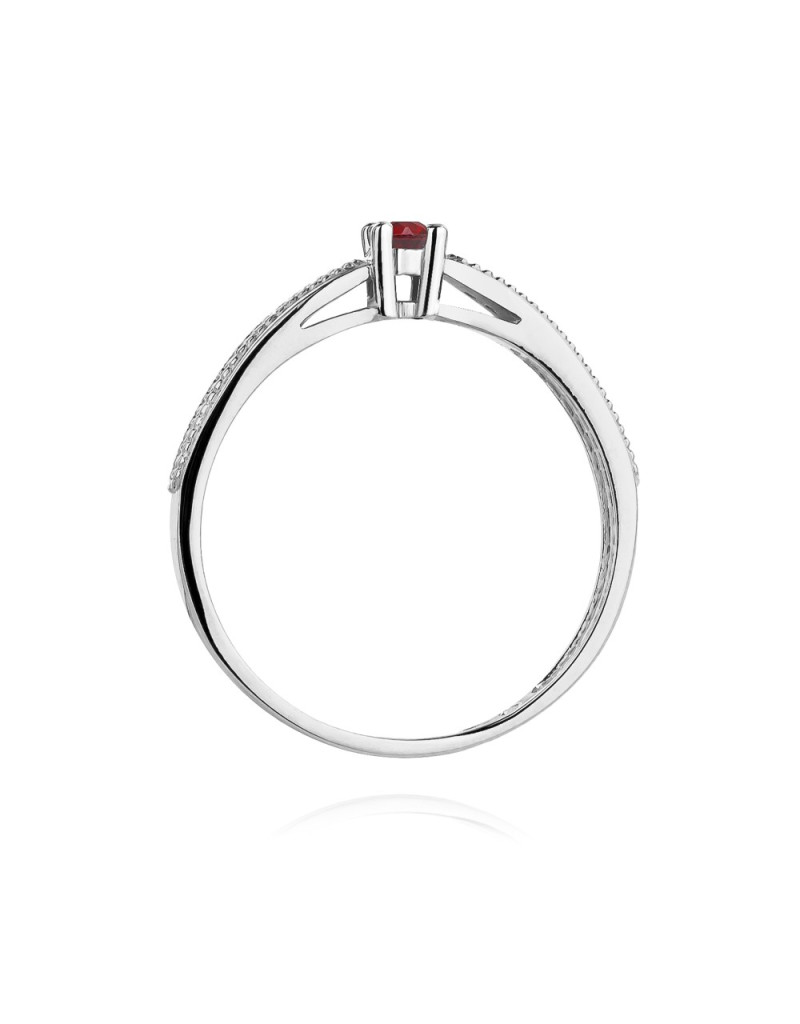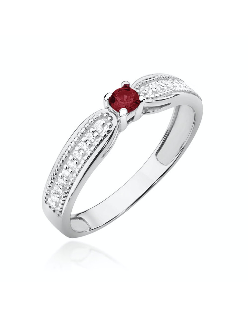 Efektowny złoty pierścionek z czarującym rubinem i brylantami w wyjątkowej oprawie.