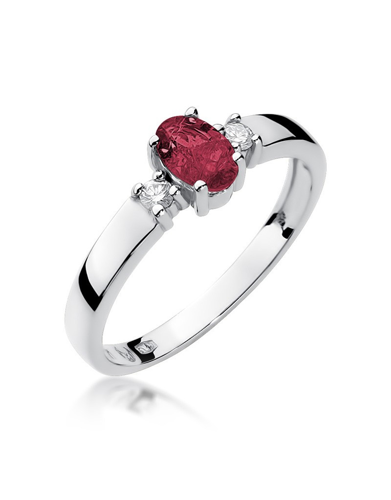 Czarujący pierścionek z białego złota ze zjawiskowym rubinem i 2 brylantami.
