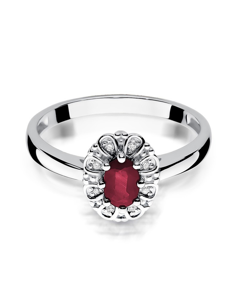 Bajeczny złoty pierścionek z unikatowym rubinem w ażurowej oprawie z brylantami.