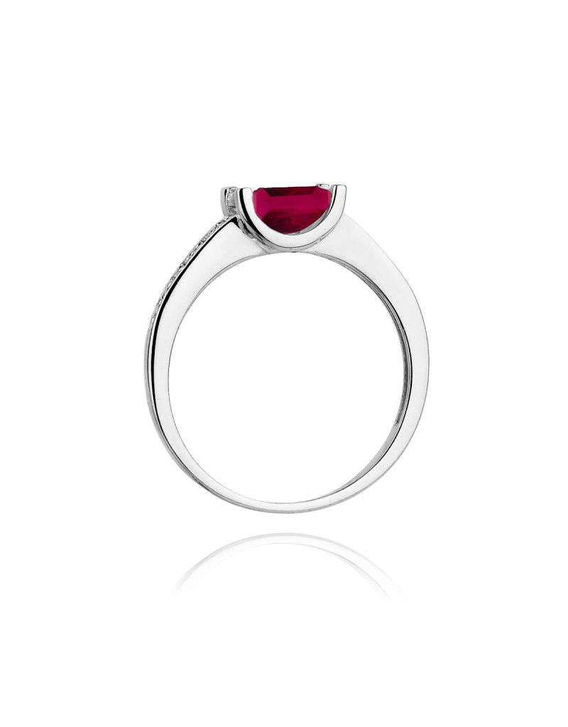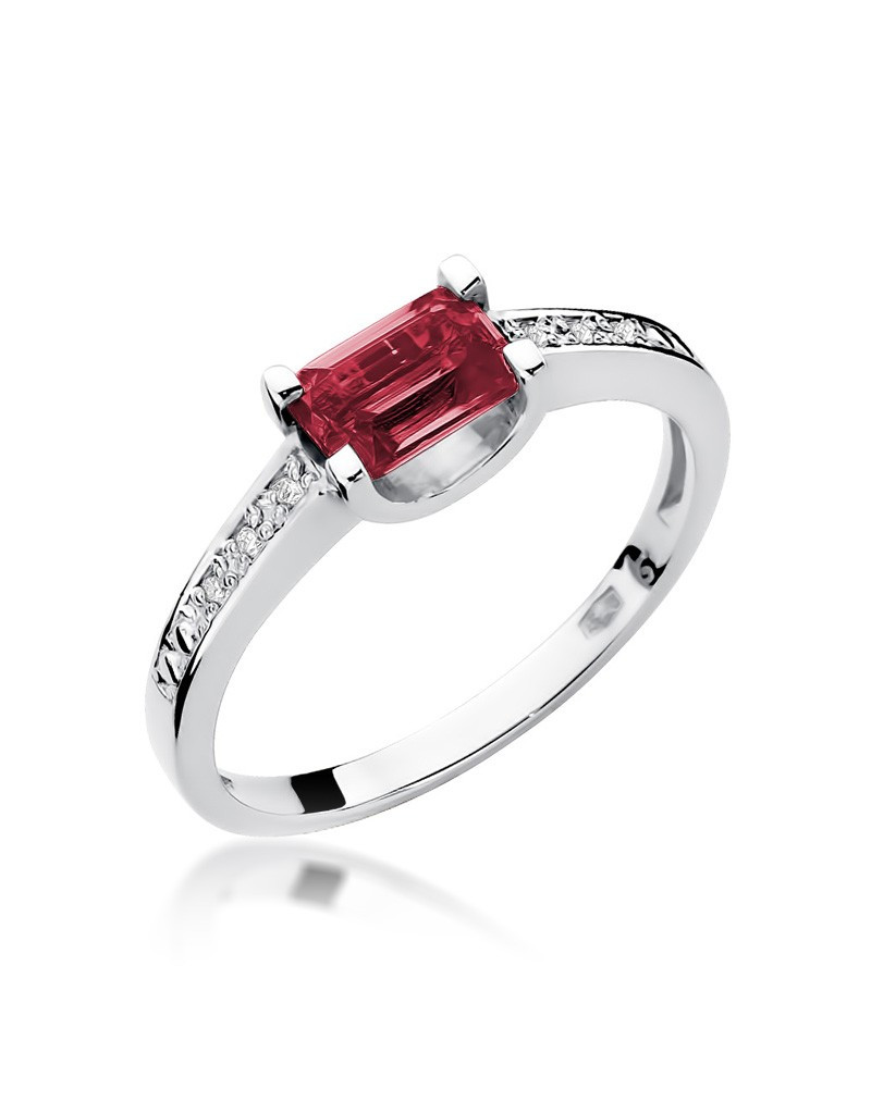 Oryginalny złoty pierścionek z ognistym rubinem oraz brylantami, które dodają mu blasku.