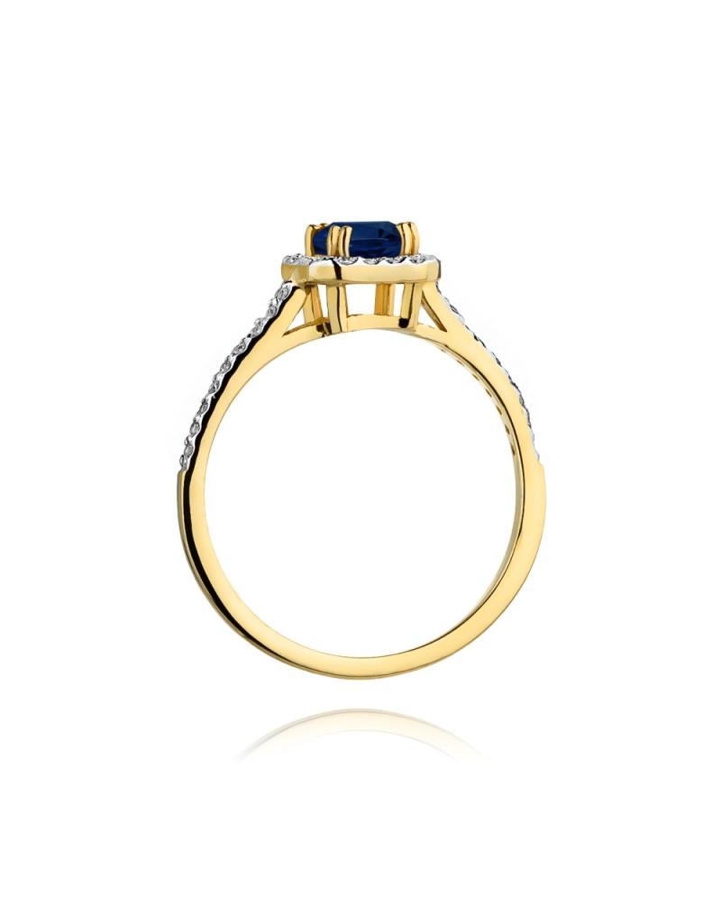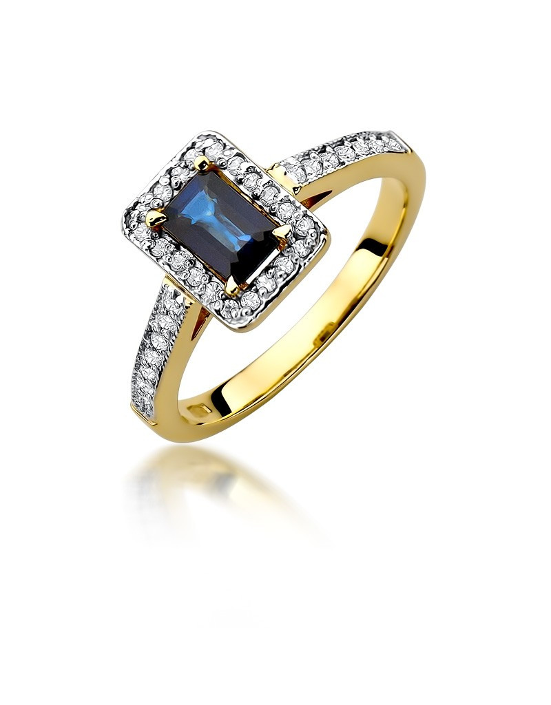 Pierścionek z szafirem i brylantami w żółtym złocie, niepowtarzalny wzór, idealnie pasuje na delikatną kobiecą dłoń. Model idealnie łączący tradycje i nowoczesność.