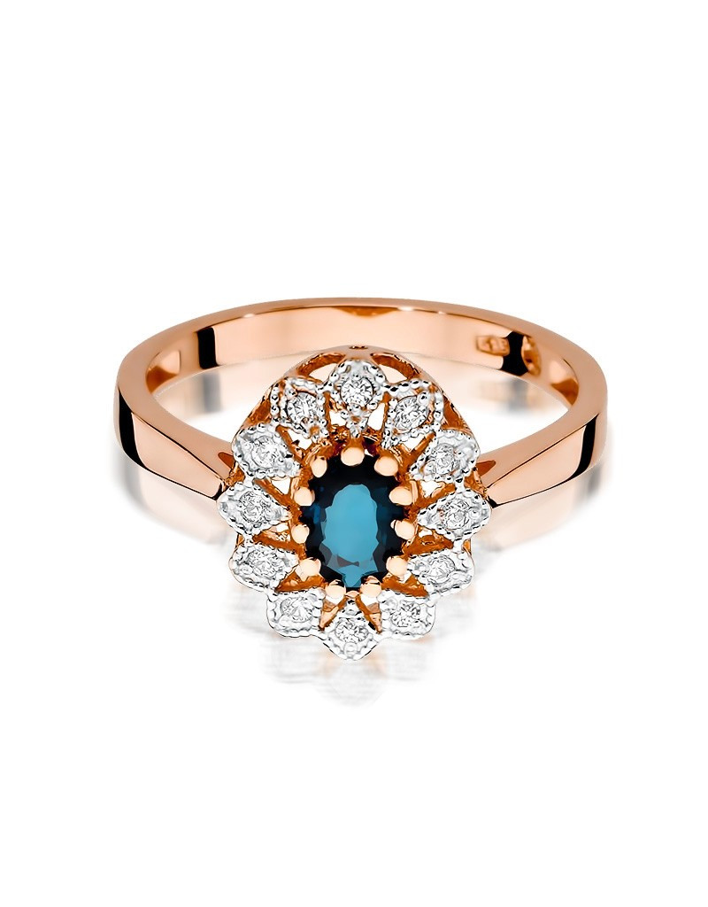 Luksusowy złoty pierścionek z fascynującym szafirem oprawionym 12 brylantami.