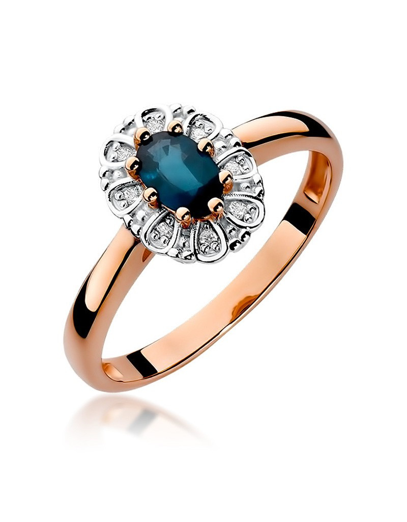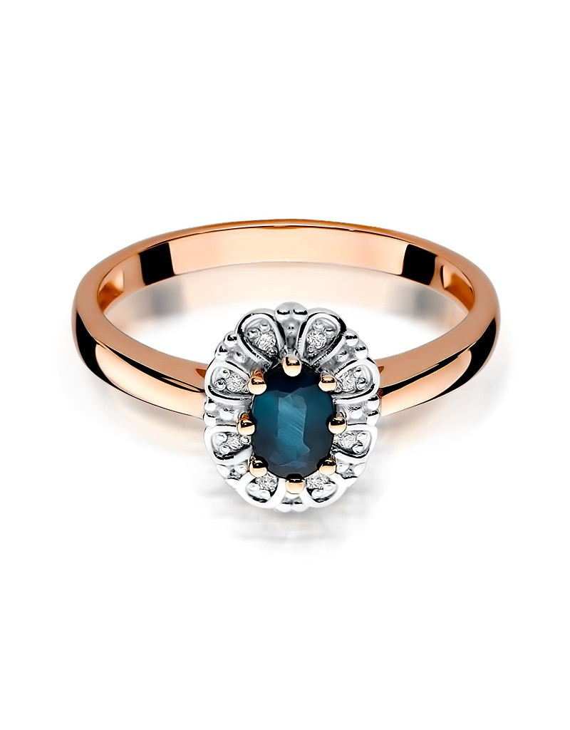 Bajeczny złoty pierścionek z unikatowym szafirem w ażurowej oprawie z brylantami.