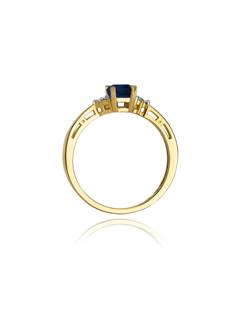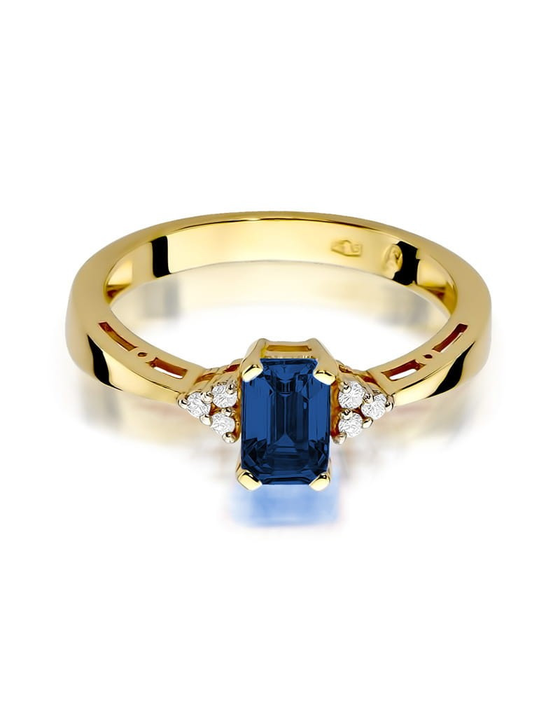 Zjawiskowy pierścionek z żółtego złota z prostokątnym szafirem