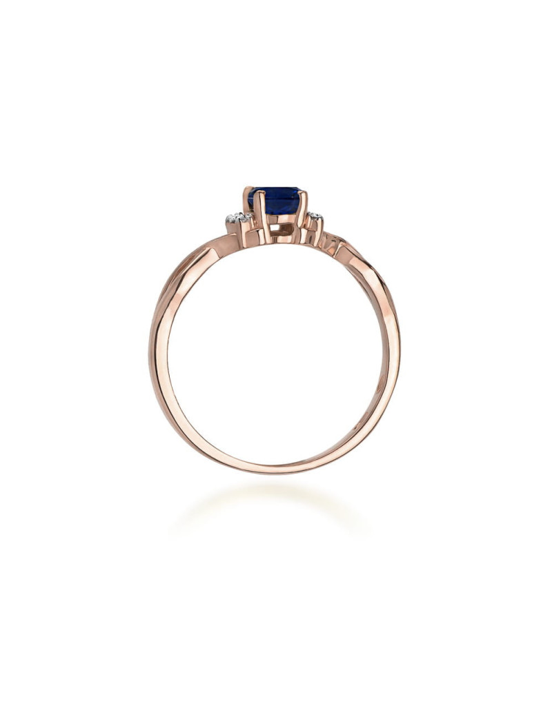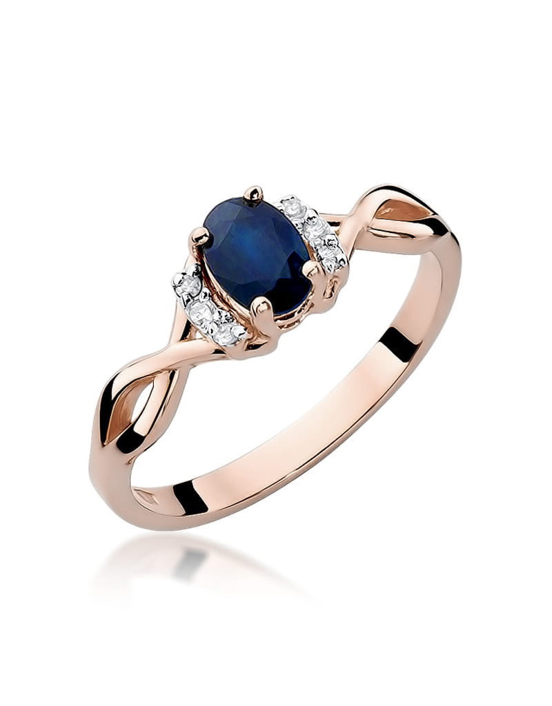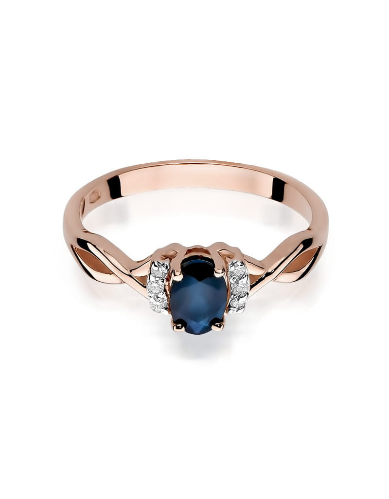 Urzekający wzór pierścionka z różowego złota z czarującym szafirem i 6 brylantami.