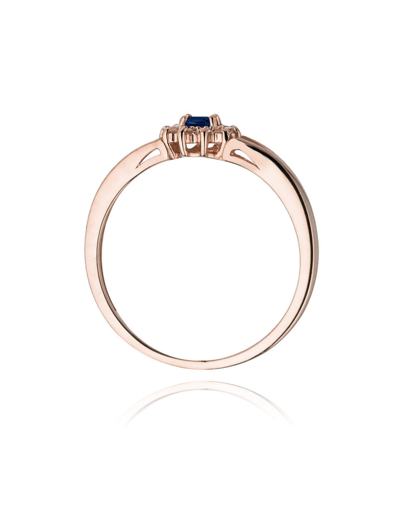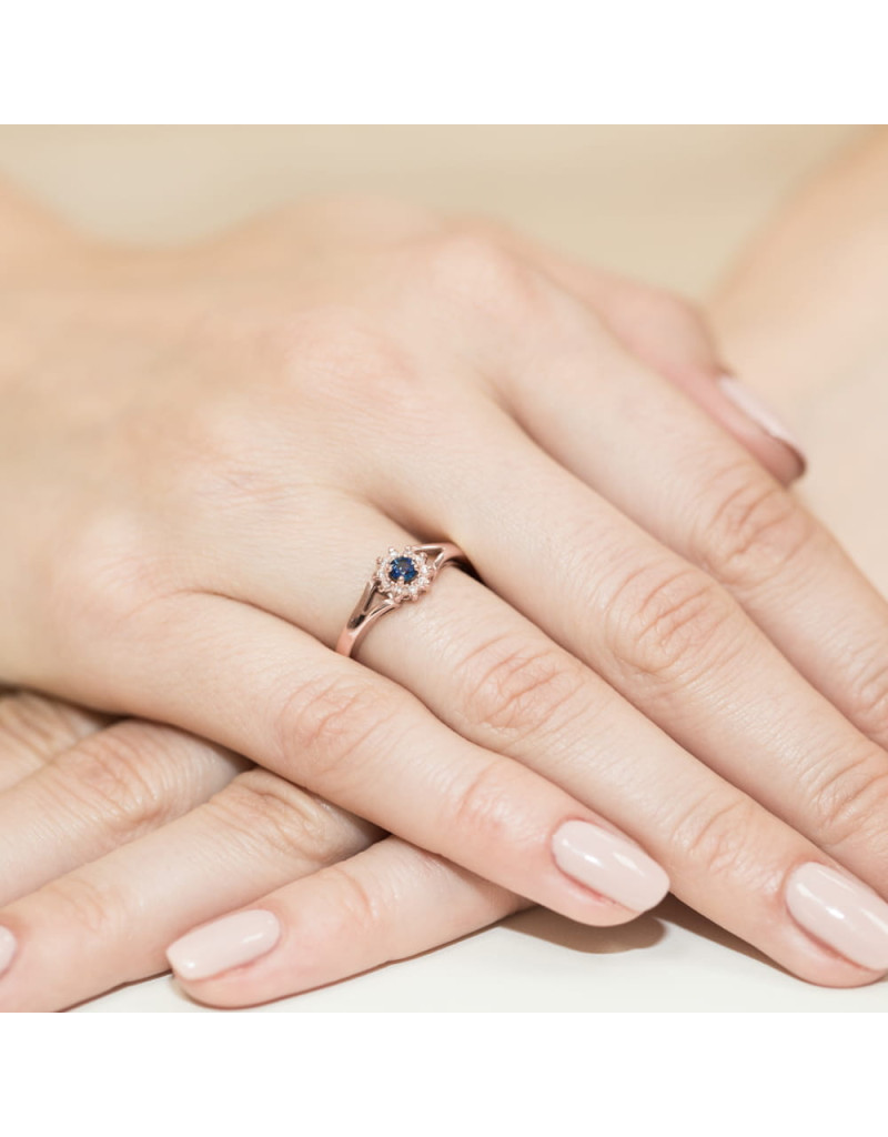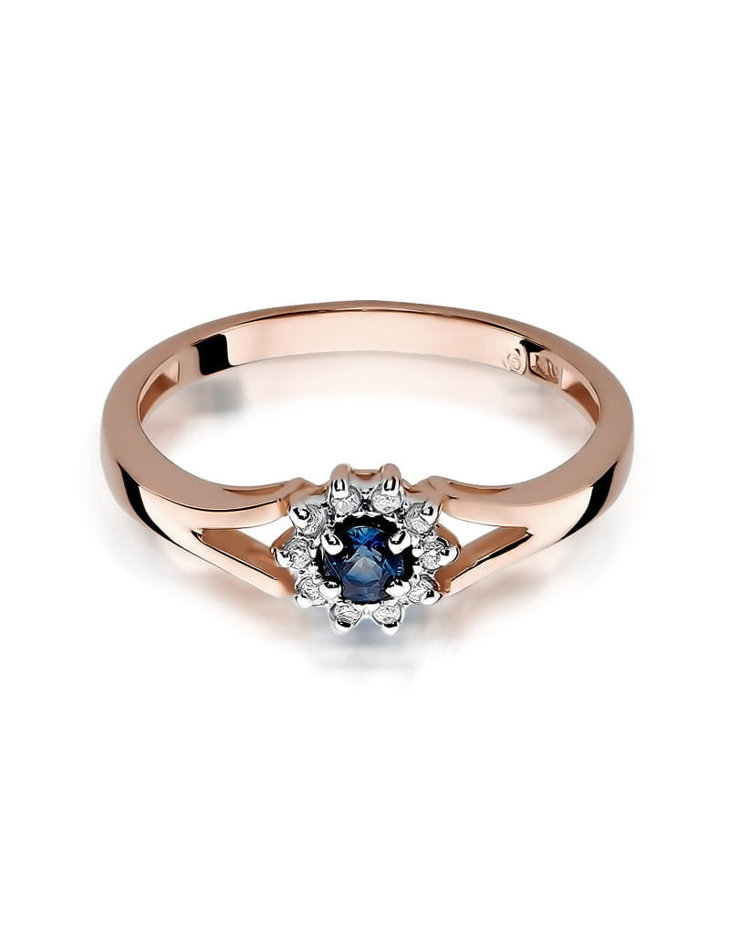 Niesamowity złoty pierścionek z czarującym szafirem i brylantami w wyjątkowej oprawie.