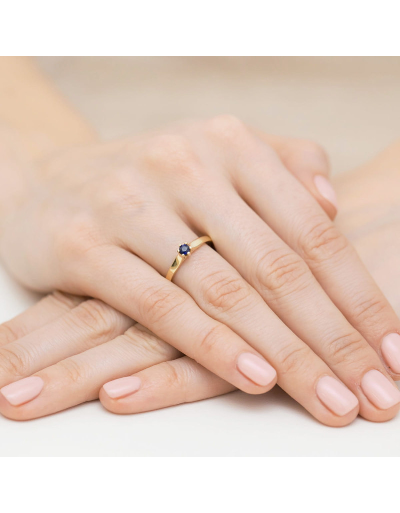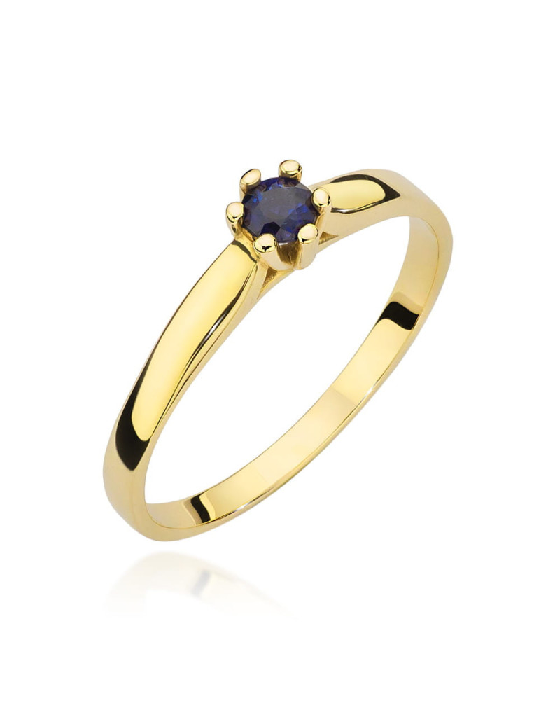 Zjawiskowy pierścionek z żółtego złota z okrągłym szafirem w sześcioramiennej oprawie