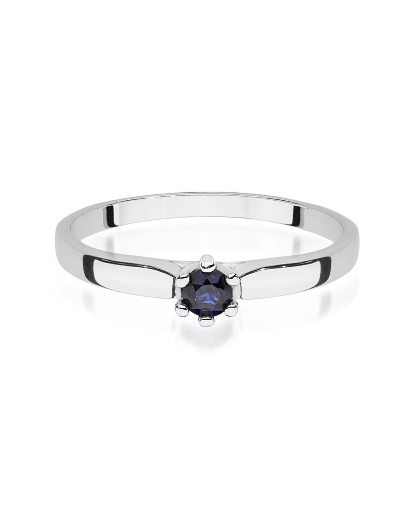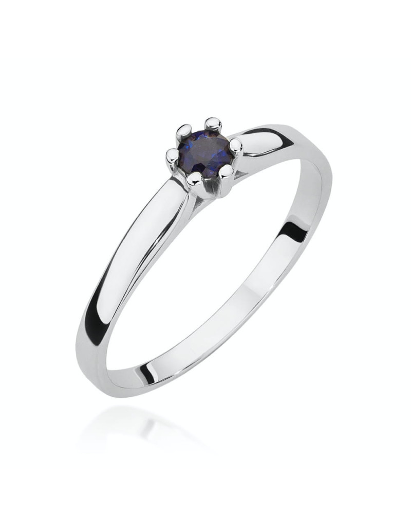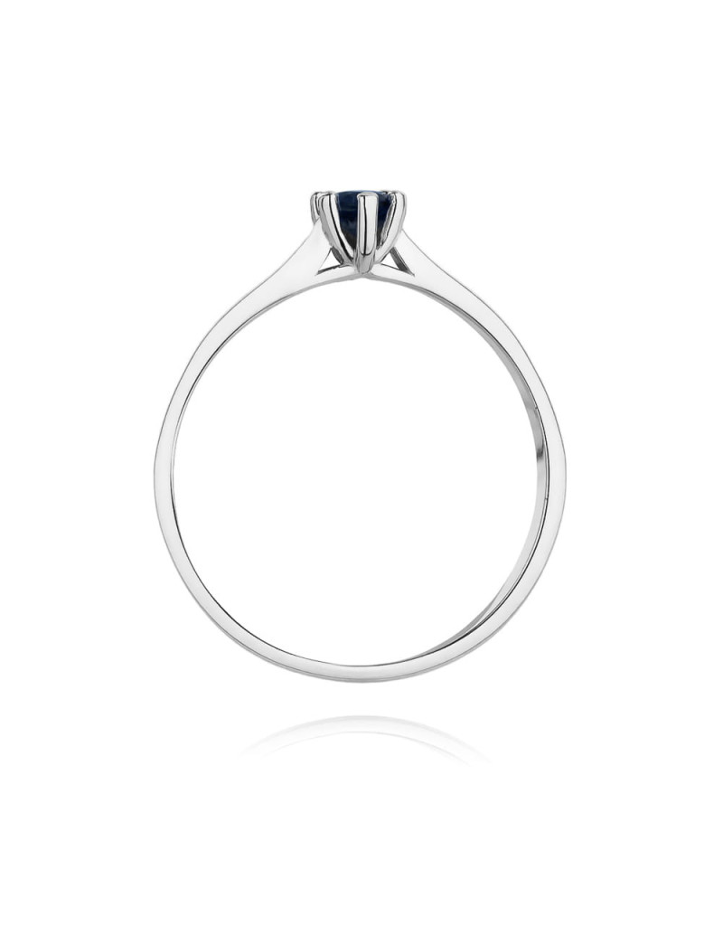 Zjawiskowy pierścionek z białego złota z okrągłym szafirem w sześcioramiennej oprawie
