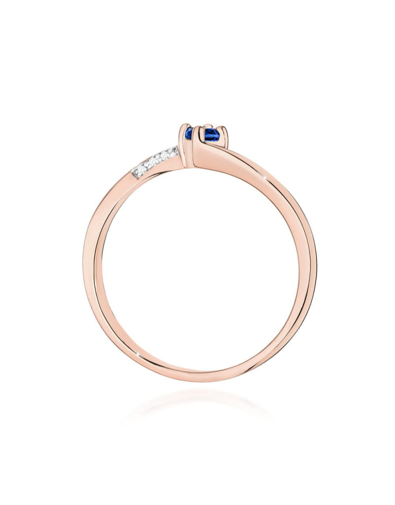 Pełen wdzięku pierścionek z różowego złota z urokliwym szafirem i brylantami w wyjątkowej oprawie.