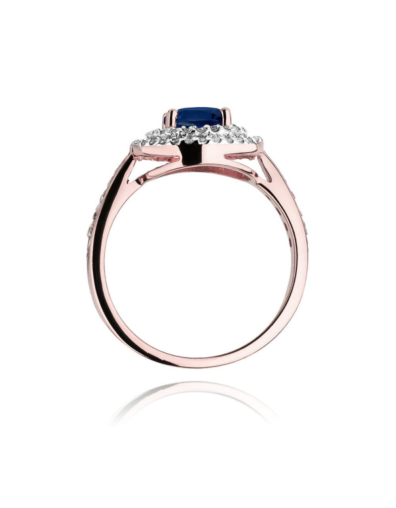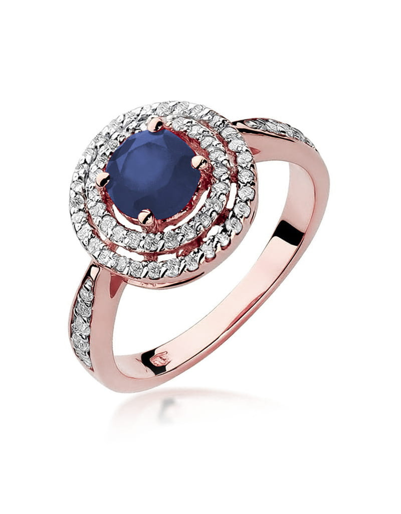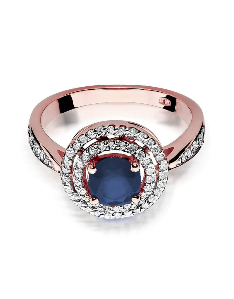 Pełen uroku pierścionek wykonany z różowego złota ze zjawiskowym szafirem i 62 brylantami które dodają mu blasku.