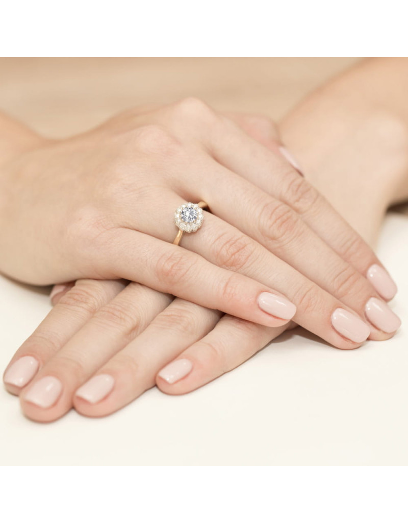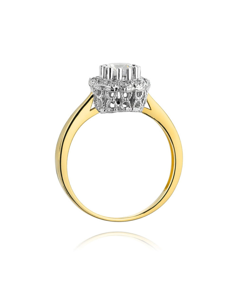 Godny podziwu pierścionek z nieskazitelnym szafirem białym w przepięknej brylantowej oprawie.