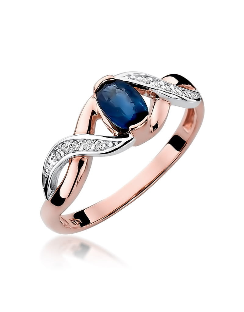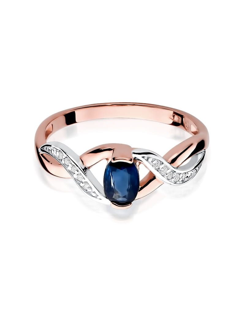 Zachwycający pierścionek z wyjątkowo naturalnym szafirem i 10 brylantami.