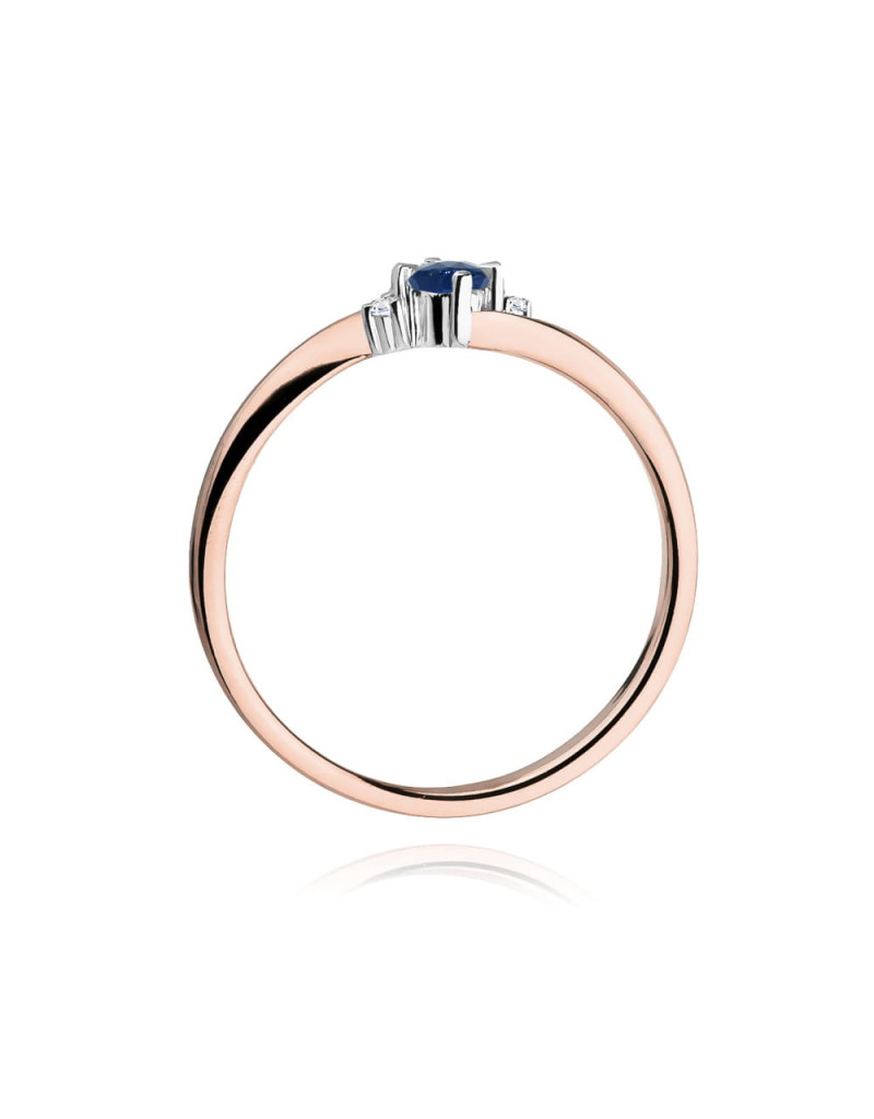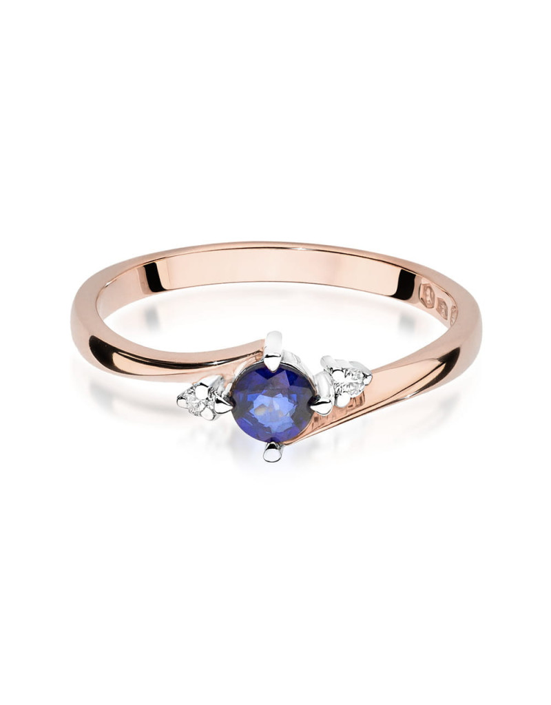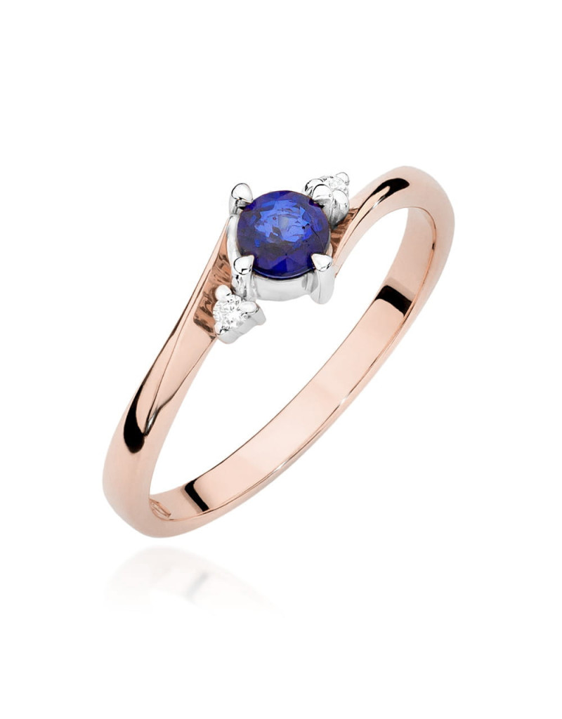 Delikatny wzór pierścionek z pięknym szafirem i 2 brylantami.