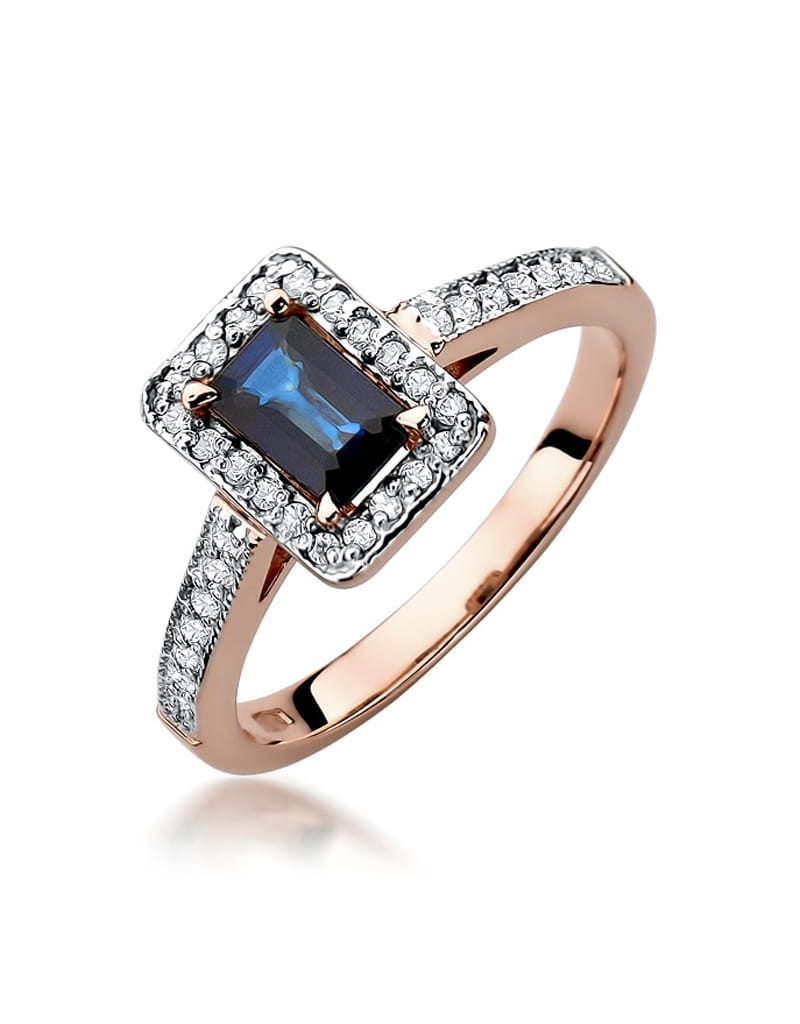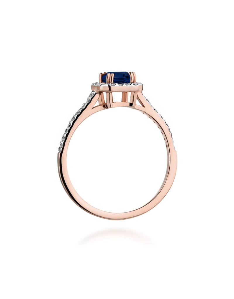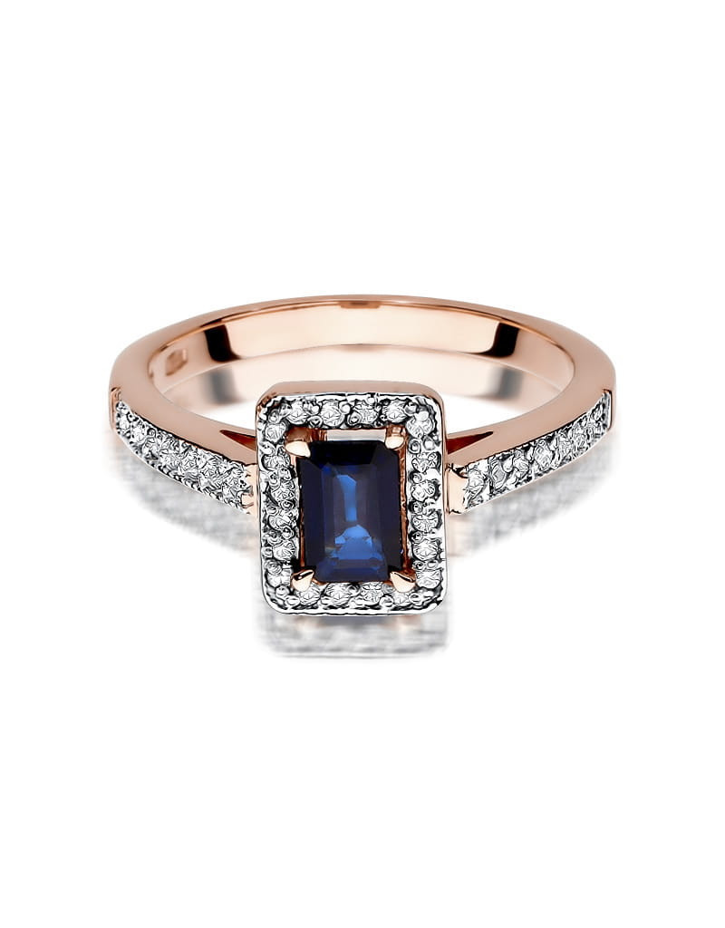 Pierścionek z szafirem i brylantami w różowym złocie, niepowtarzalny wzór, idealnie pasuje na delikatną kobiecą dłoń. Model idealnie łączący tradycje i nowoczesność.