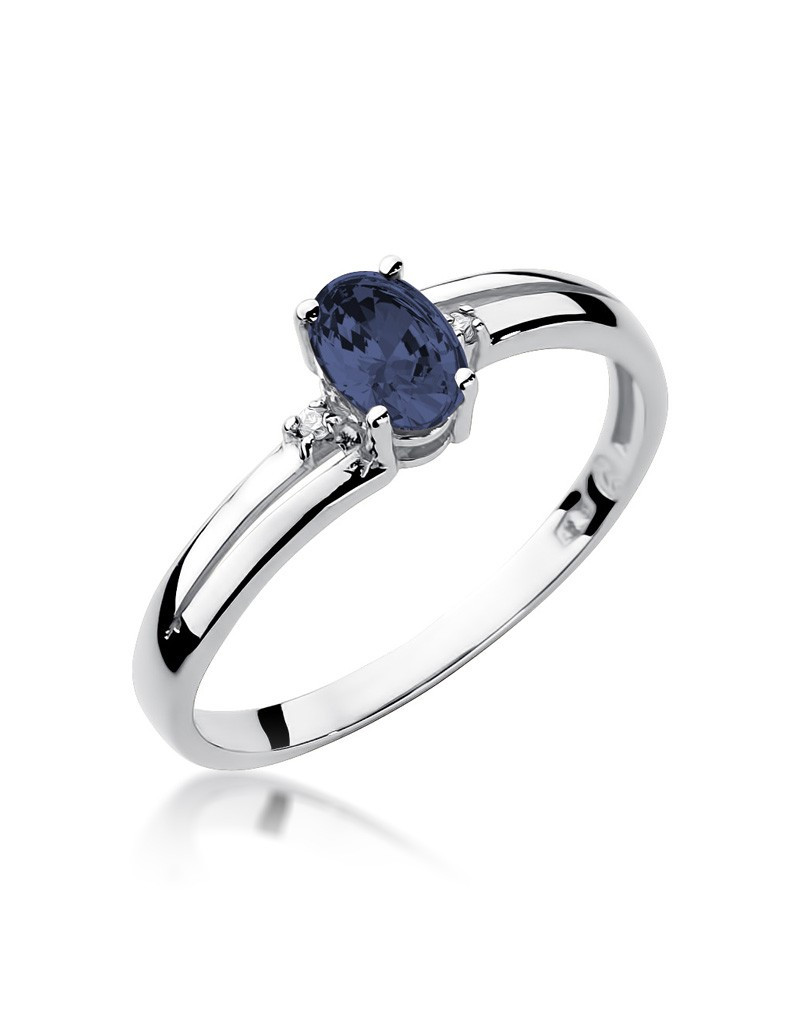 Efektowny złoty pierścionek z czarującym szafirem i brylantami w wyjątkowej oprawie.