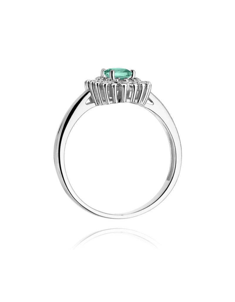 Pełen elegancji pierścionek z urokliwym szmaragdem i 39 brylantami, które dodają mu blasku.