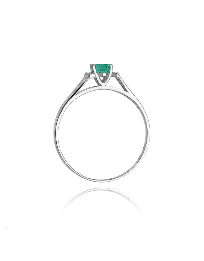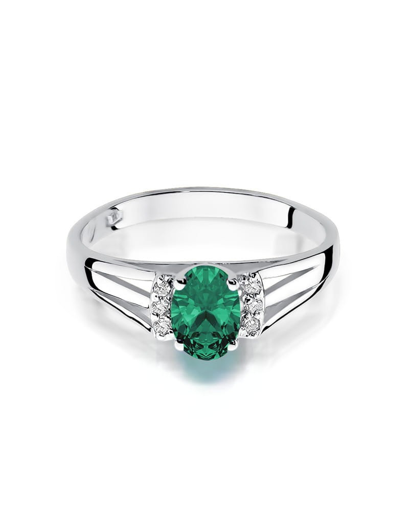 Doskonały wzór pierścionka z sześcioma brylantami, oraz niezwykłym owalnym szmaragdem. Wykonany z białego złota.
