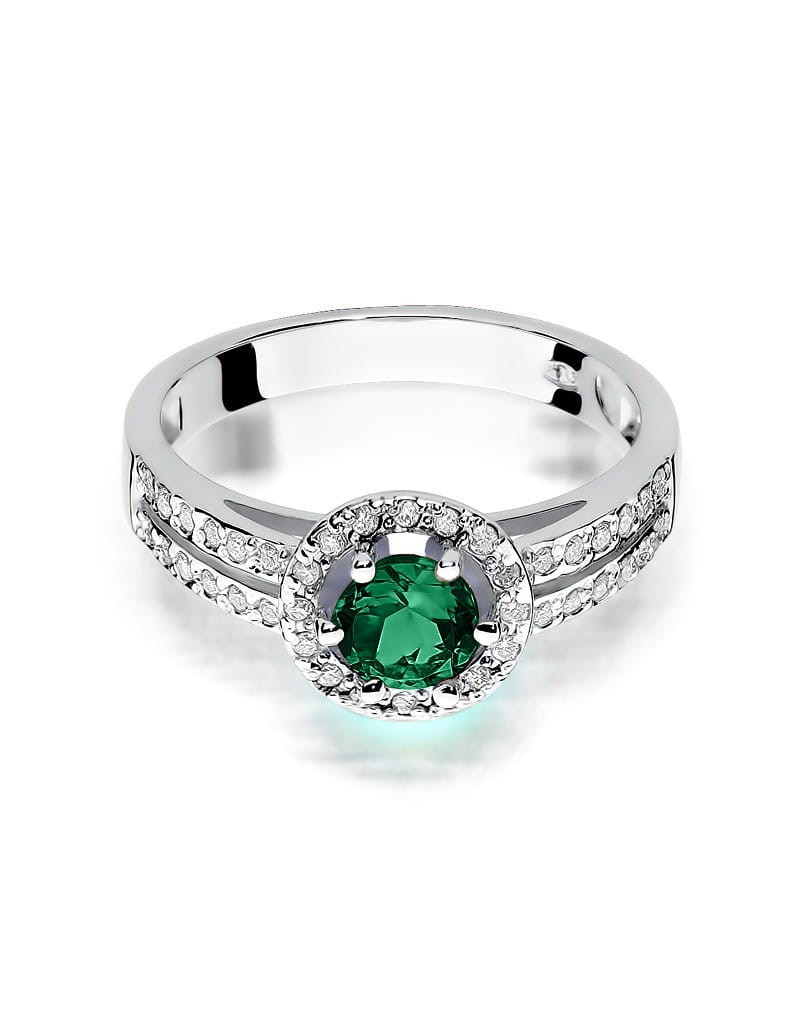 Luksusowy złoty pierścionek z okrągłym szmaragdem i 40 brylantami które pięknie go rozświetlają.