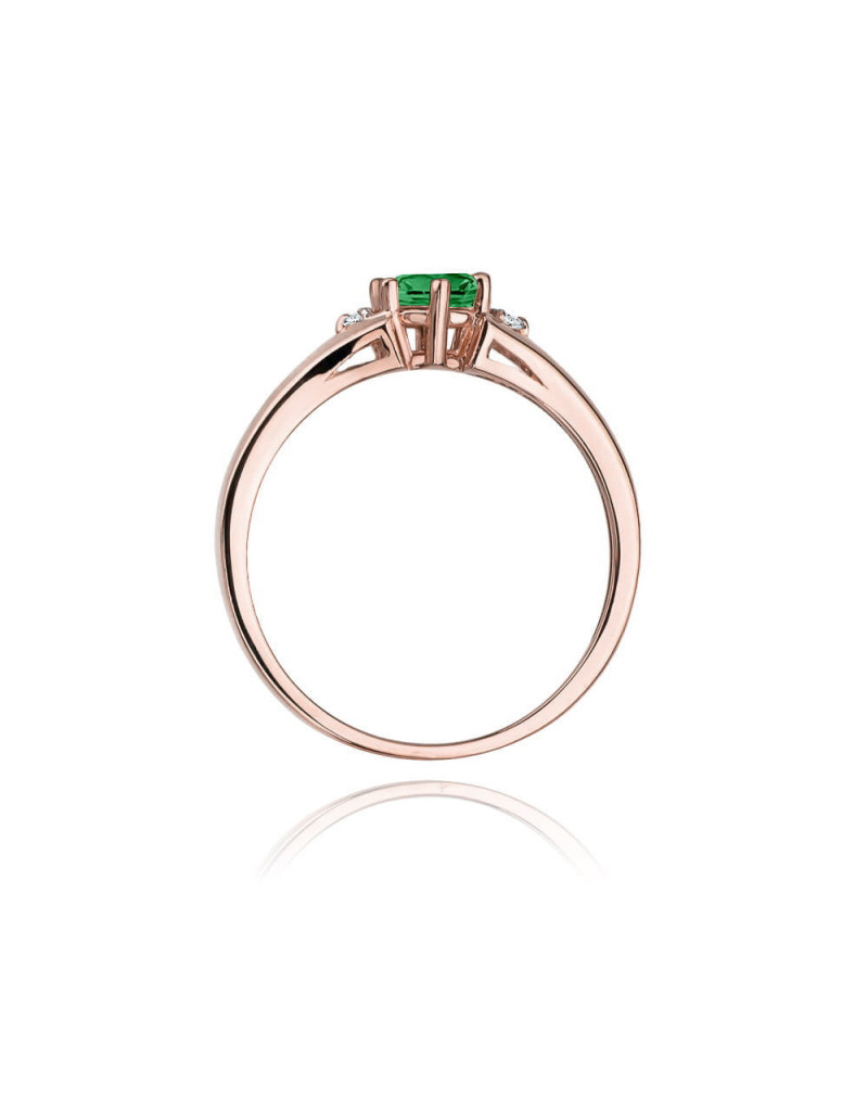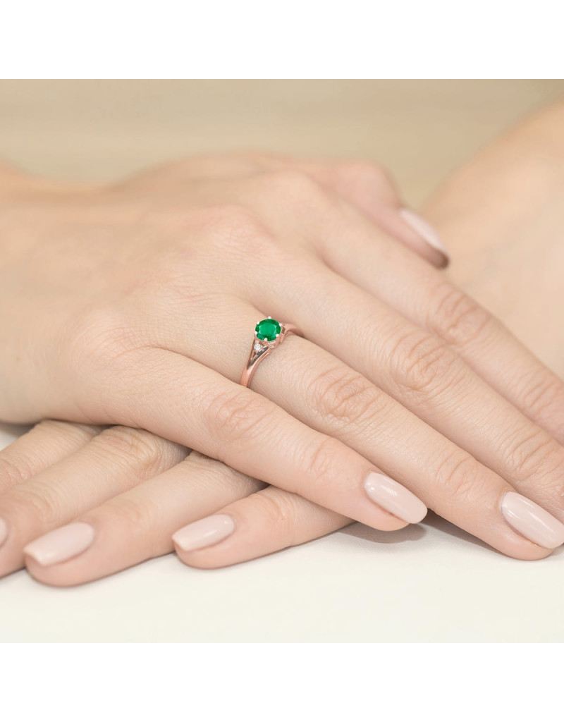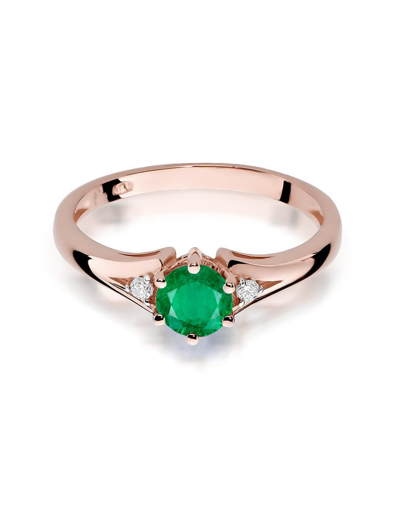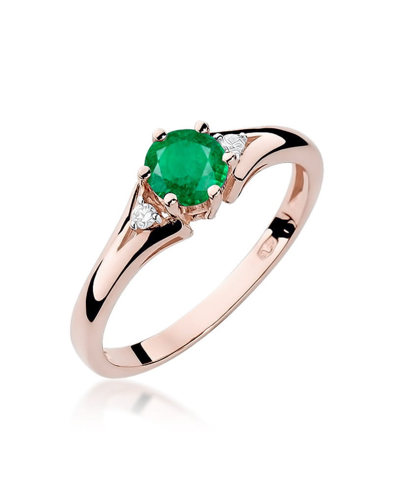 Zjawiskowy pierścionek z żółtego złota z okrągłym szmaragdem i brylantami.