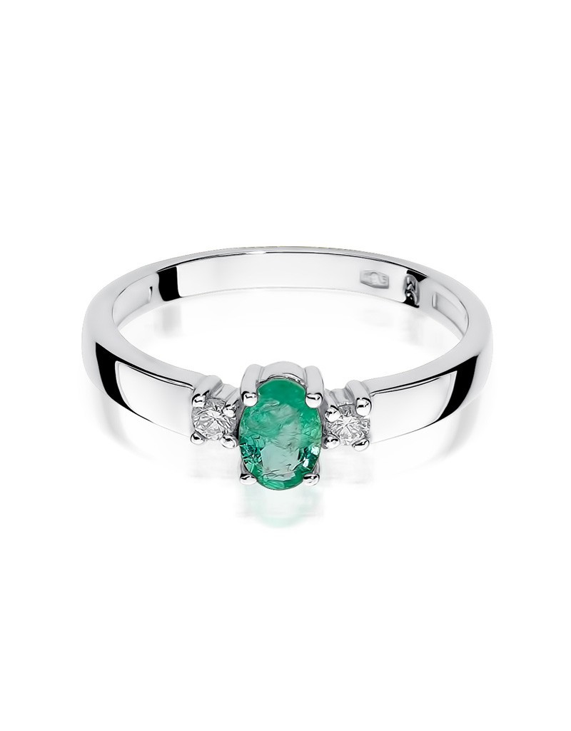 Czarujący pierścionek z białego złota ze zjawiskowym szmaragdem i 2 brylantami.