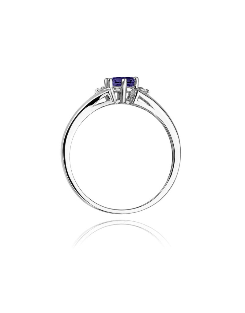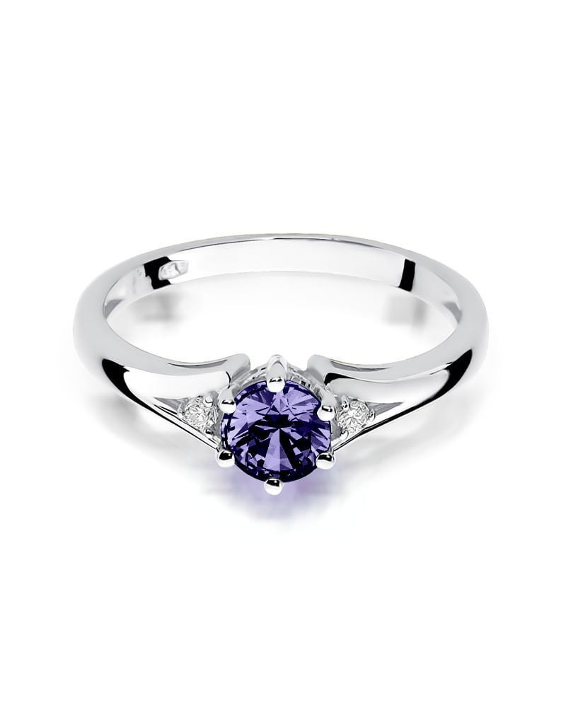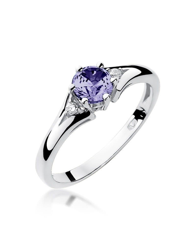 Zjawiskowy pierścionek z białego złota z okrągłym tanzanitem i brylantami.