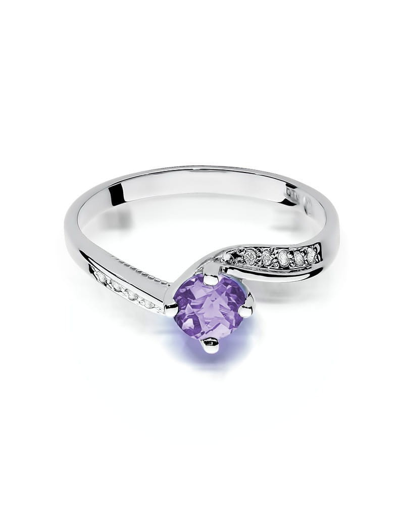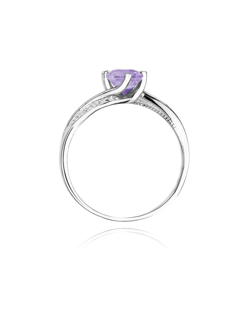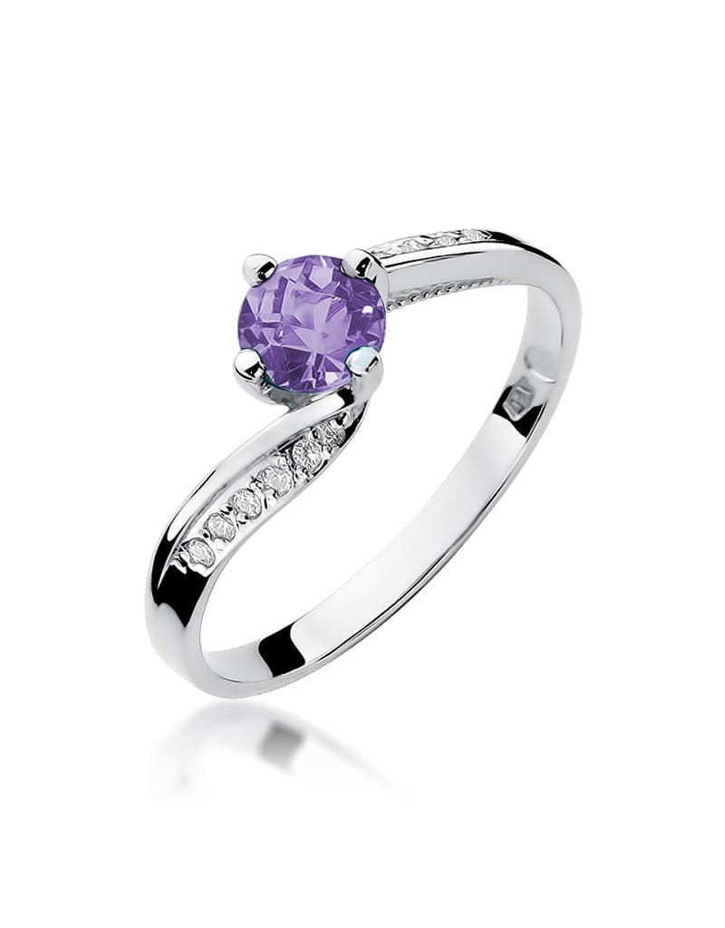 Pełen wdzięku pierścionek z białego złota z urokliwym tanzanitem i brylantami w romantycznej oprawie.
