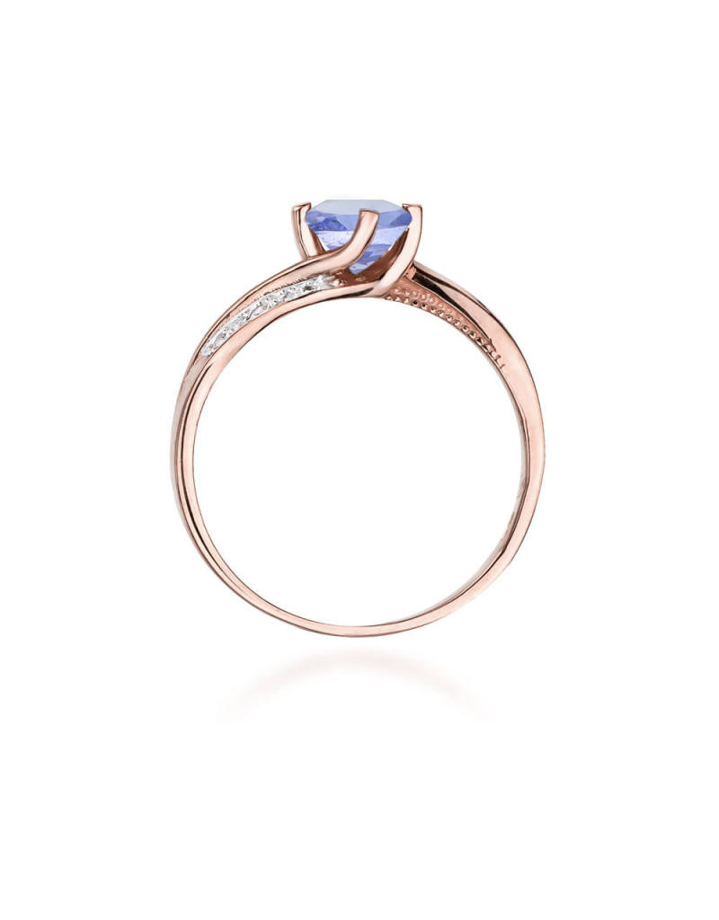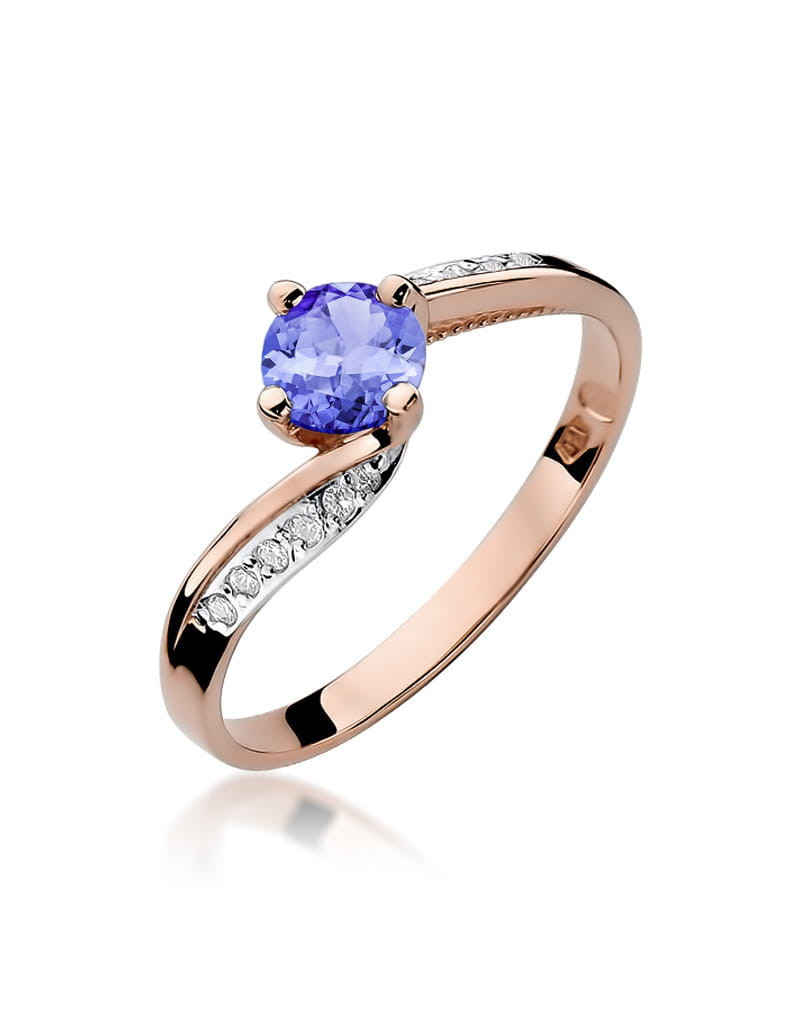 Pełen wdzięku pierścionek z różowego złota z urokliwym tanzanitem i brylantami osadzonymi w białym złocie i finezyjnej oprawie.