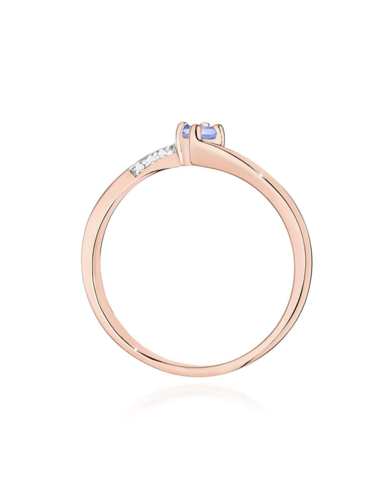 Pełen wdzięku pierścionek z różowego złota z urokliwym tanzanitem i brylantami w wyjątkowej oprawie.