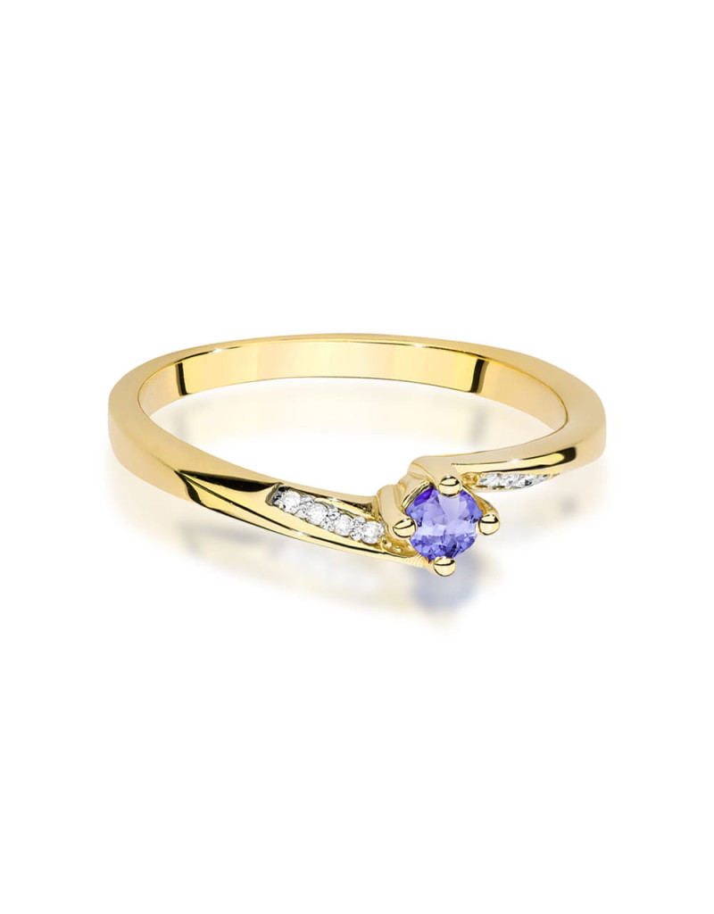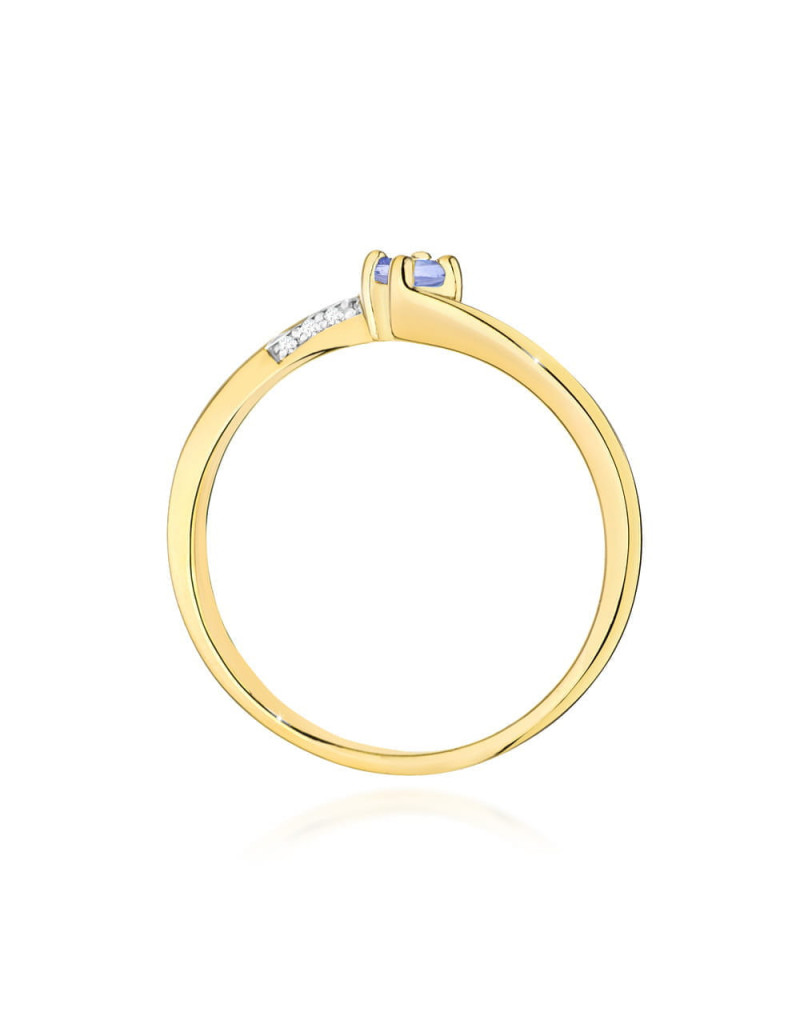 Pełen wdzięku pierścionek z żółtego złota z urokliwym tanzanitem i brylantami w wyjątkowej oprawie.