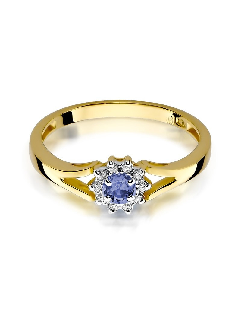 Niesamowity złoty pierścionek z czarującym tanzanitem i brylantami w wyjątkowej oprawie.