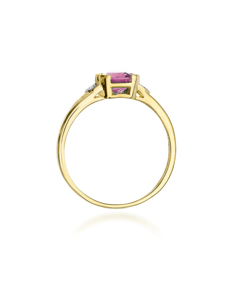 Oryginalny pierścionek wykonany z żółtego złota z czarującym topazem i 2 brylantami.