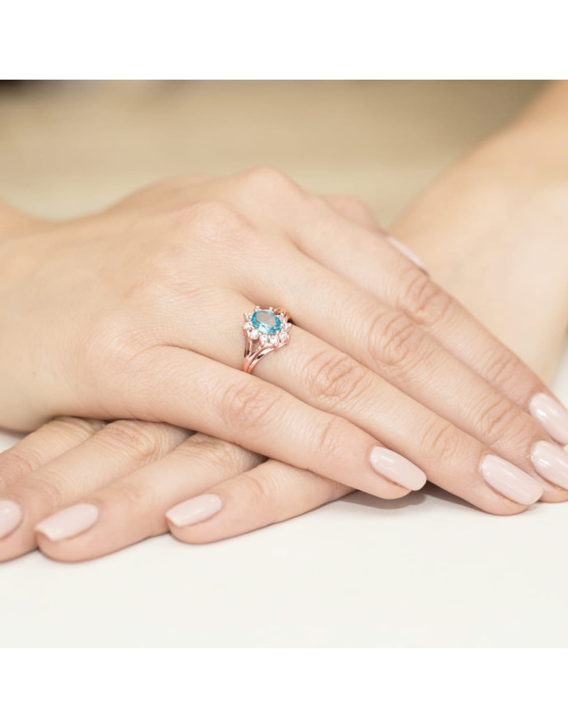 Błękitny topaz oprawiony w złoto stanowi idealną biżuterię dla każdej kobiety.