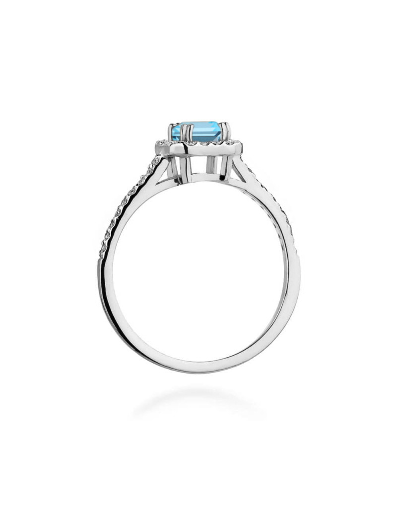 Pierścionek z topazem i brylantami w białym złocie, niepowtarzalny wzór, idealnie pasuje na delikatną kobiecą dłoń. Model idealnie łączący tradycje i nowoczesność.
